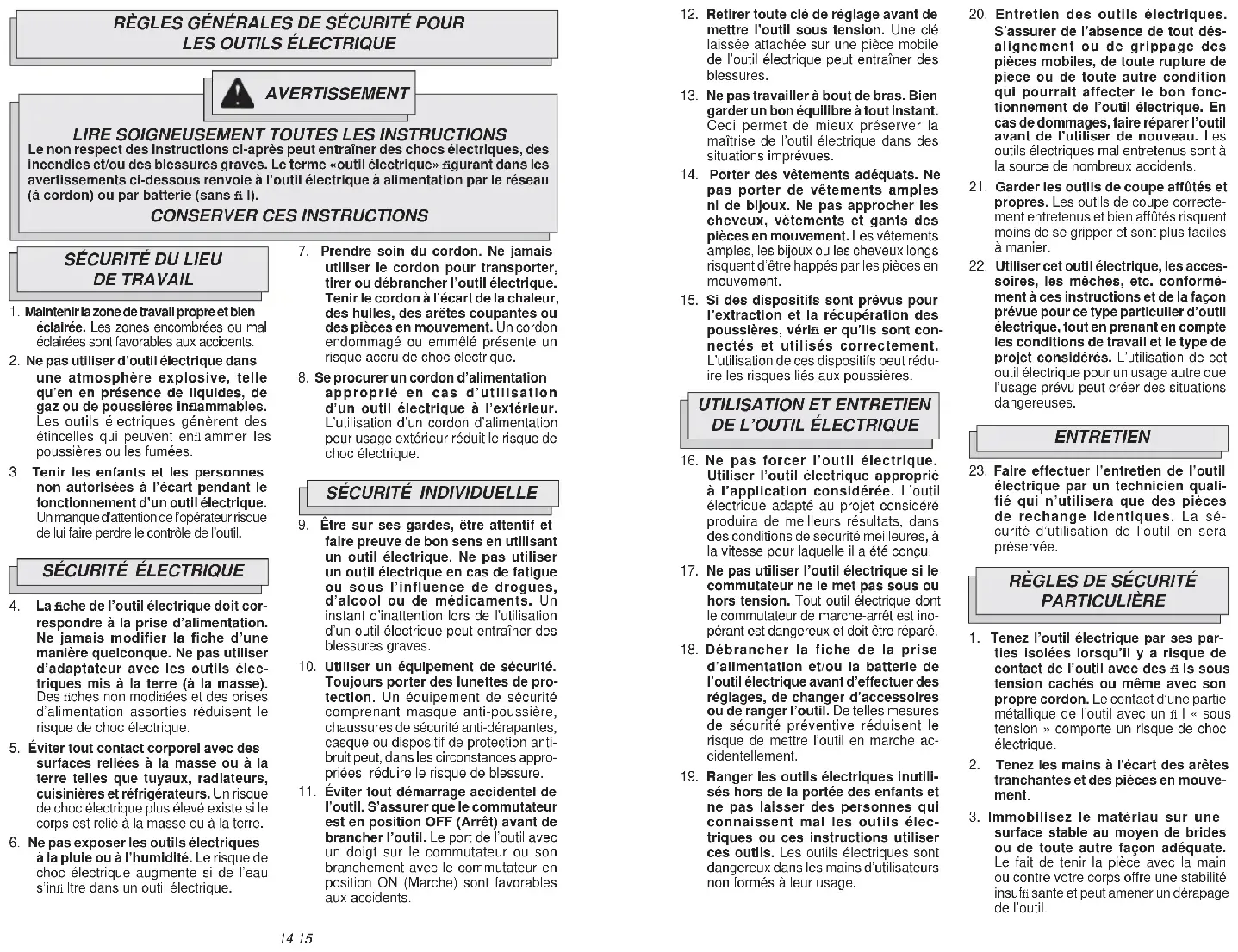 20. Entretien des outils électriques.