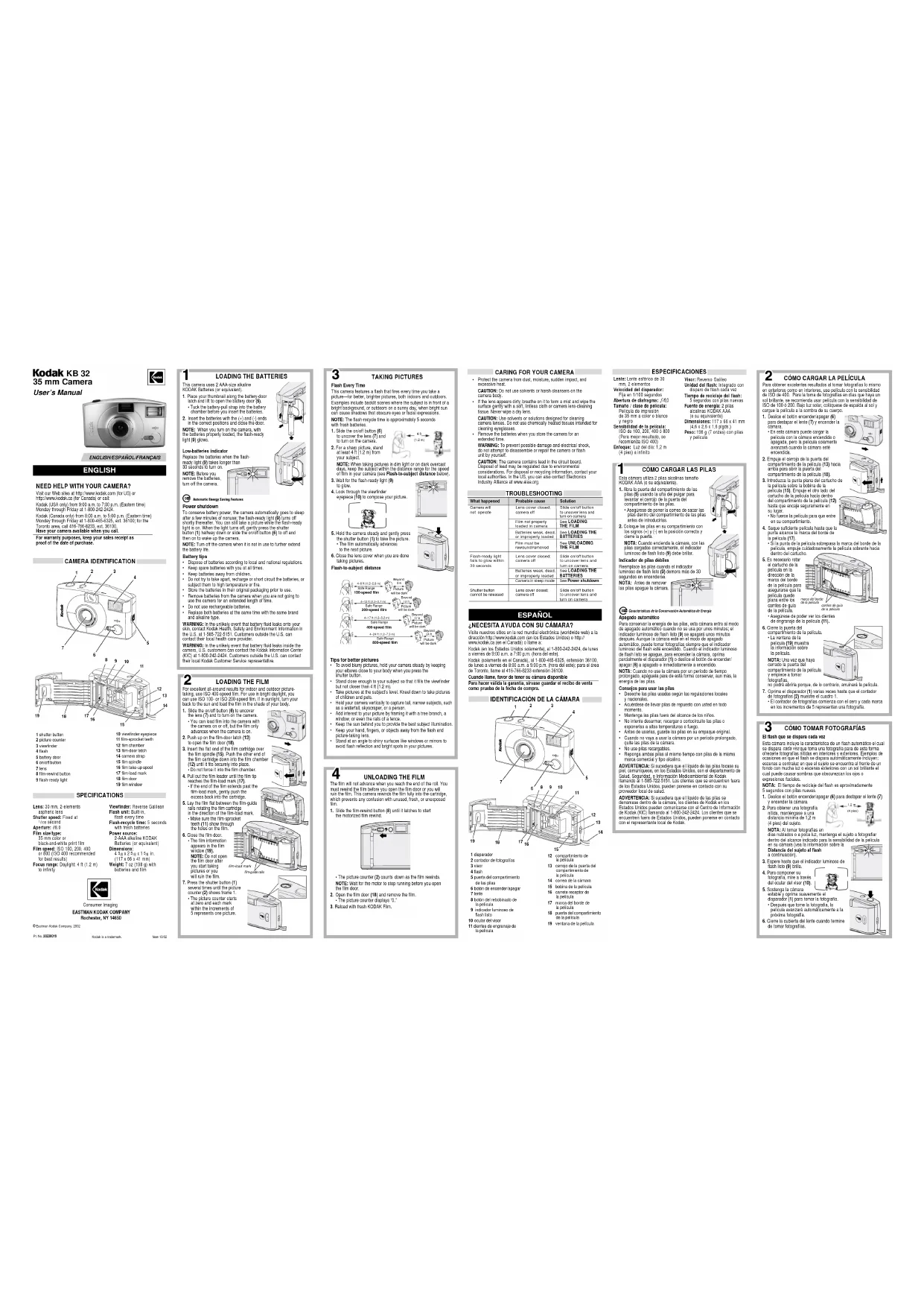 Retrouvez gratuitement la notice de l'appareil KB32 KODAK au format PDF.