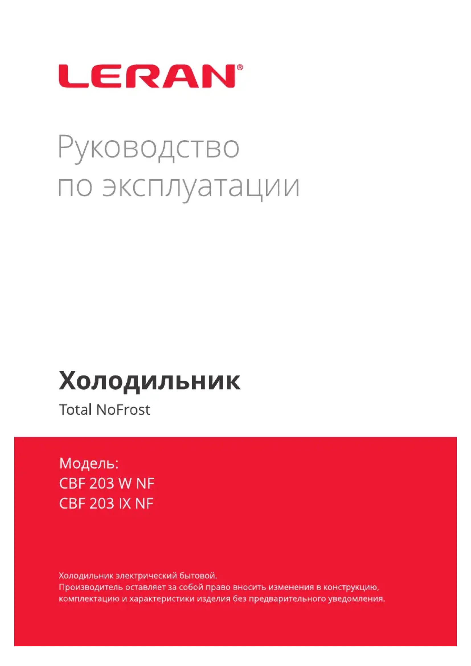 CBF 203 W NF - Réfrigérateur LERAN - Notice d'utilisation et mode d'emploi gratuit