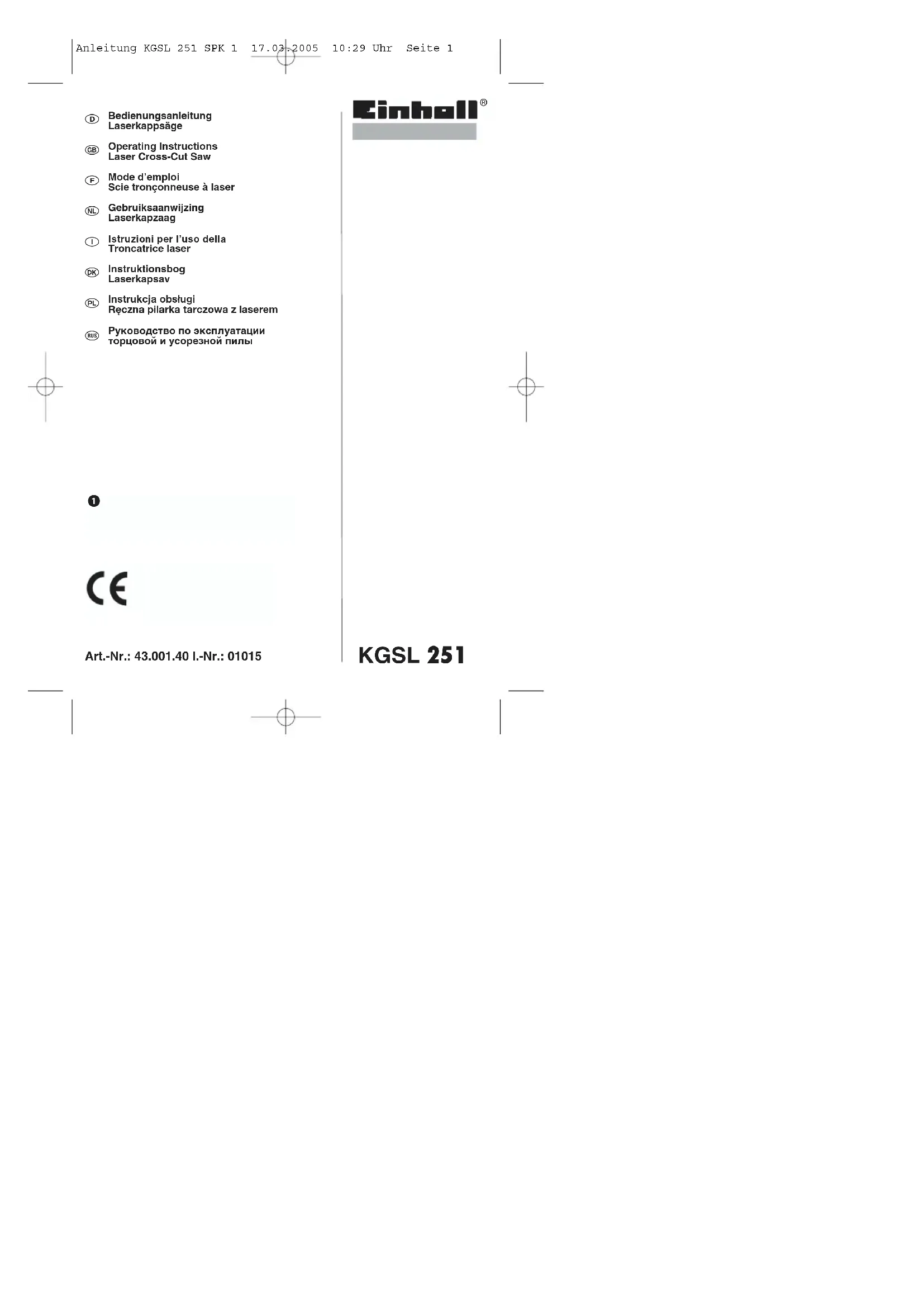 KGSL 251 U - Scie EINHELL - Notice d'utilisation et mode d'emploi gratuit
