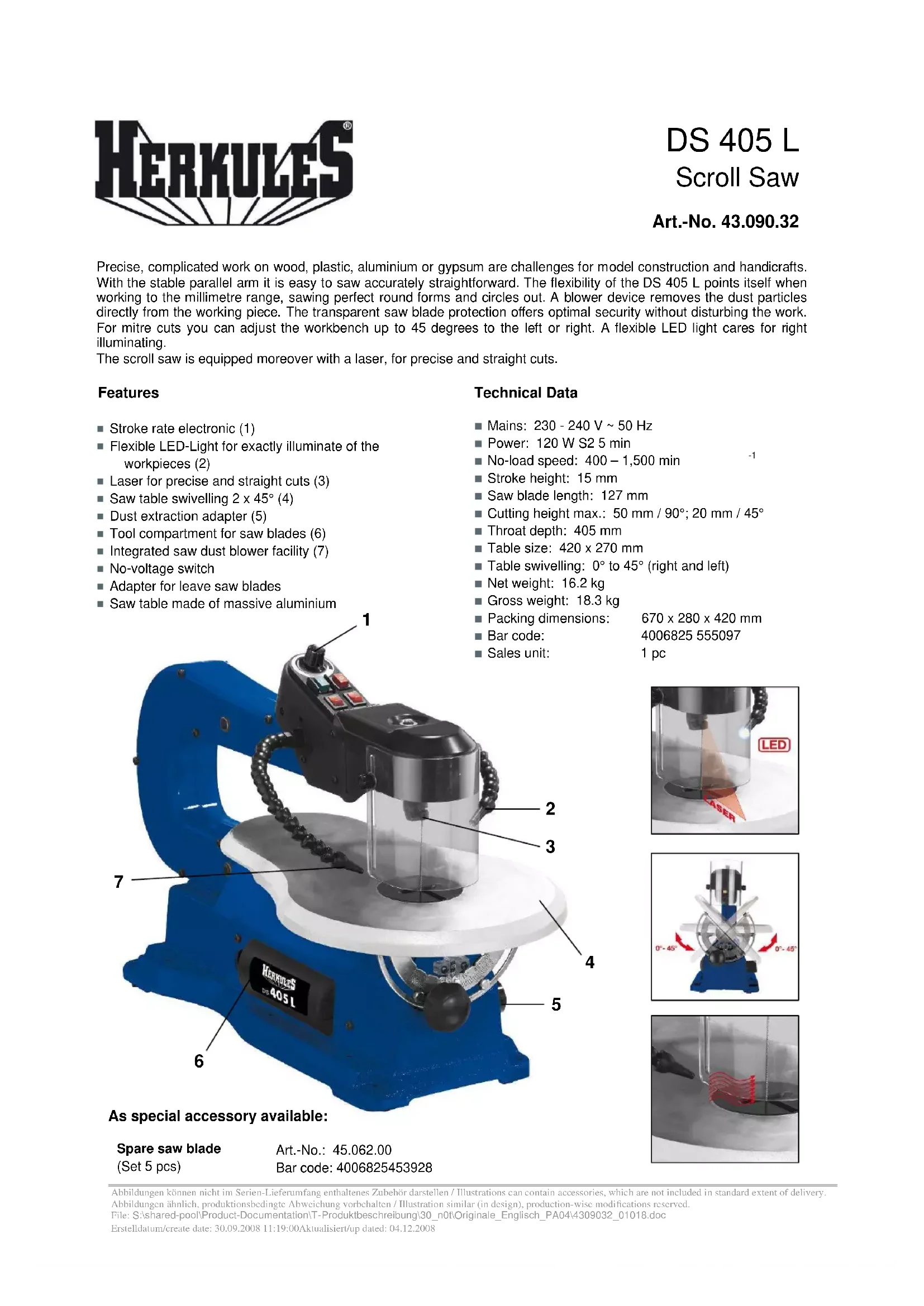 DS 405L - Scie Herkules - Notice d'utilisation et mode d'emploi gratuit