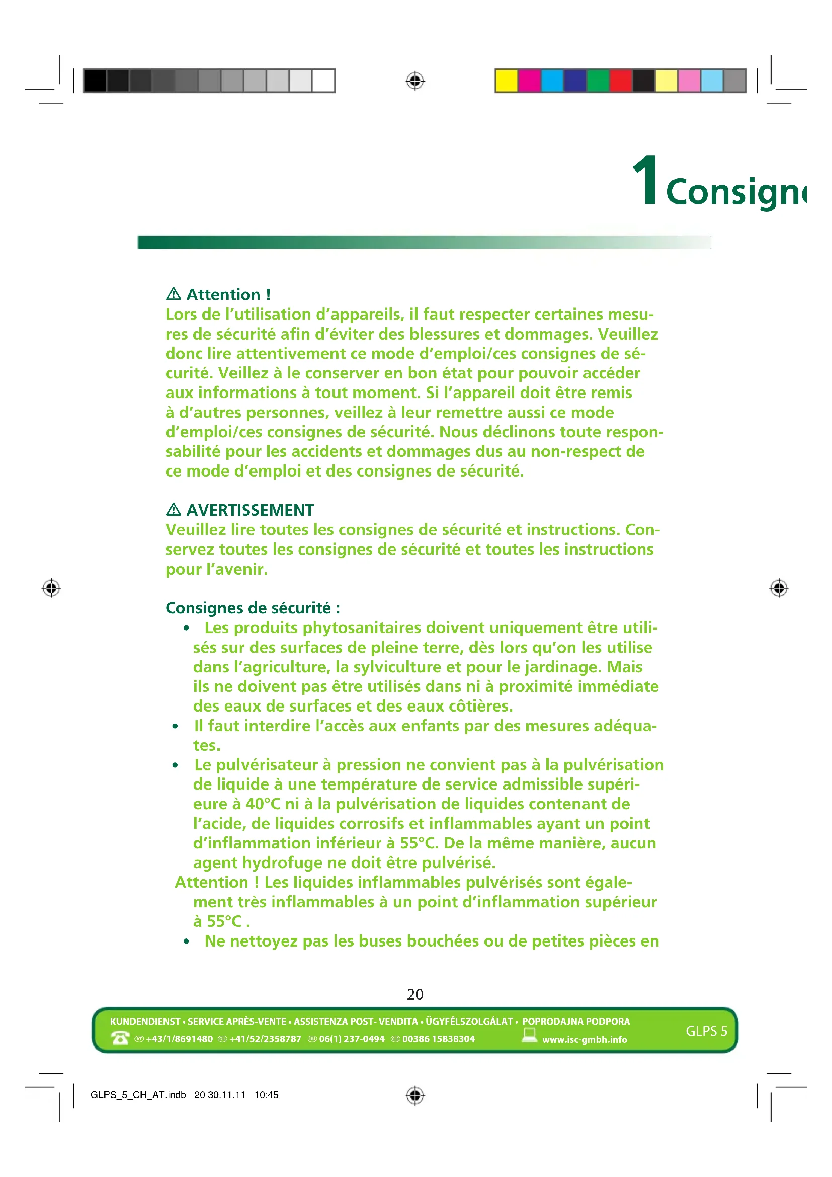 KUNDENDIENST • SERVICE APRÈS-VENTE • ASSISTENZA POST- VENDITA • ÜGYFÉLSZOLGÁLAT • POPRODAJNA PODPORA www.isc-gmbh.info GLPS 5 dans les règles de l’art, par un maniement incorrect et/ou pour toute transformation des domaines d’application.