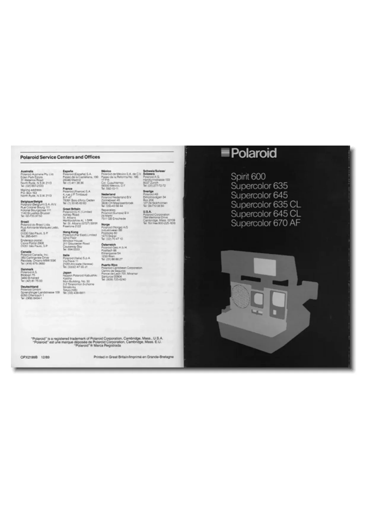 Supercolor 635 CL - Appareil photo instantané POLAROID - Notice d'utilisation et mode d'emploi gratuit