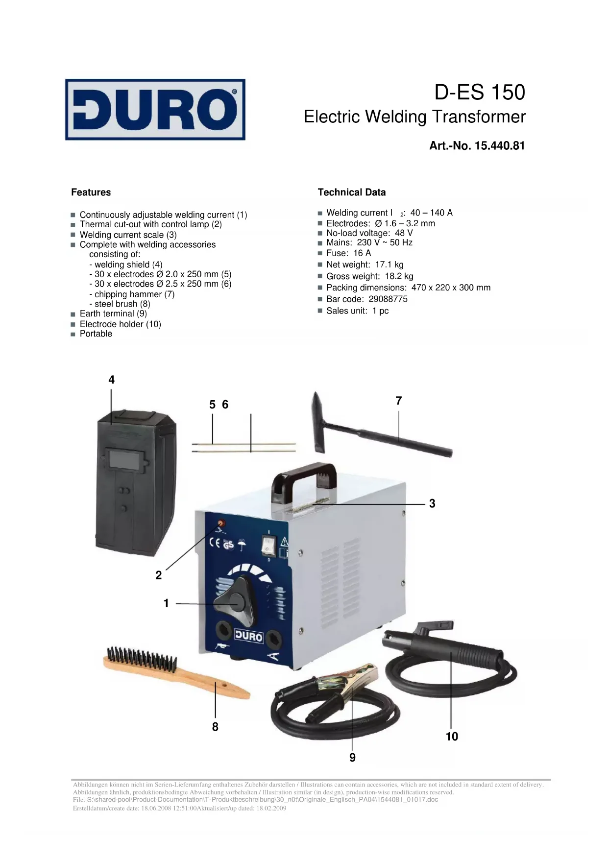DES 150 - Poste à souder DURO - Notice d'utilisation et mode d'emploi gratuit