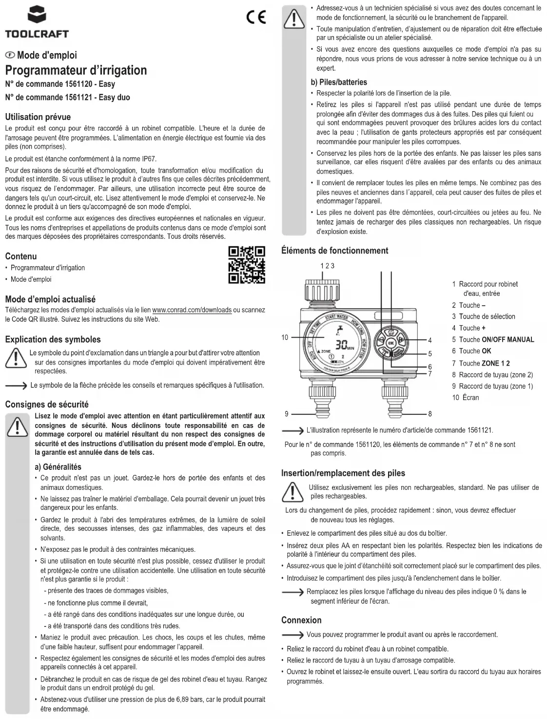 Easy 1561120 - Programmateur d'arrosage Toolcraft - Notice d'utilisation et mode d'emploi gratuit