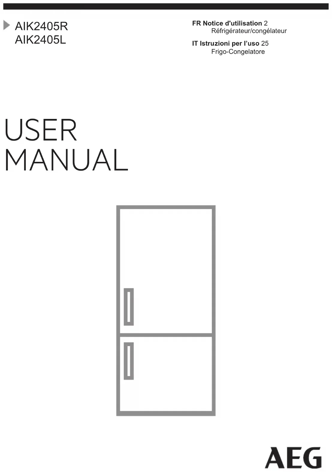 USER MANUAL FR Notice d'utilisation 2 Réfrigérateur/congélateur IT Istruzioni per l’uso 25 Frigo-Congelatore AIK2405R