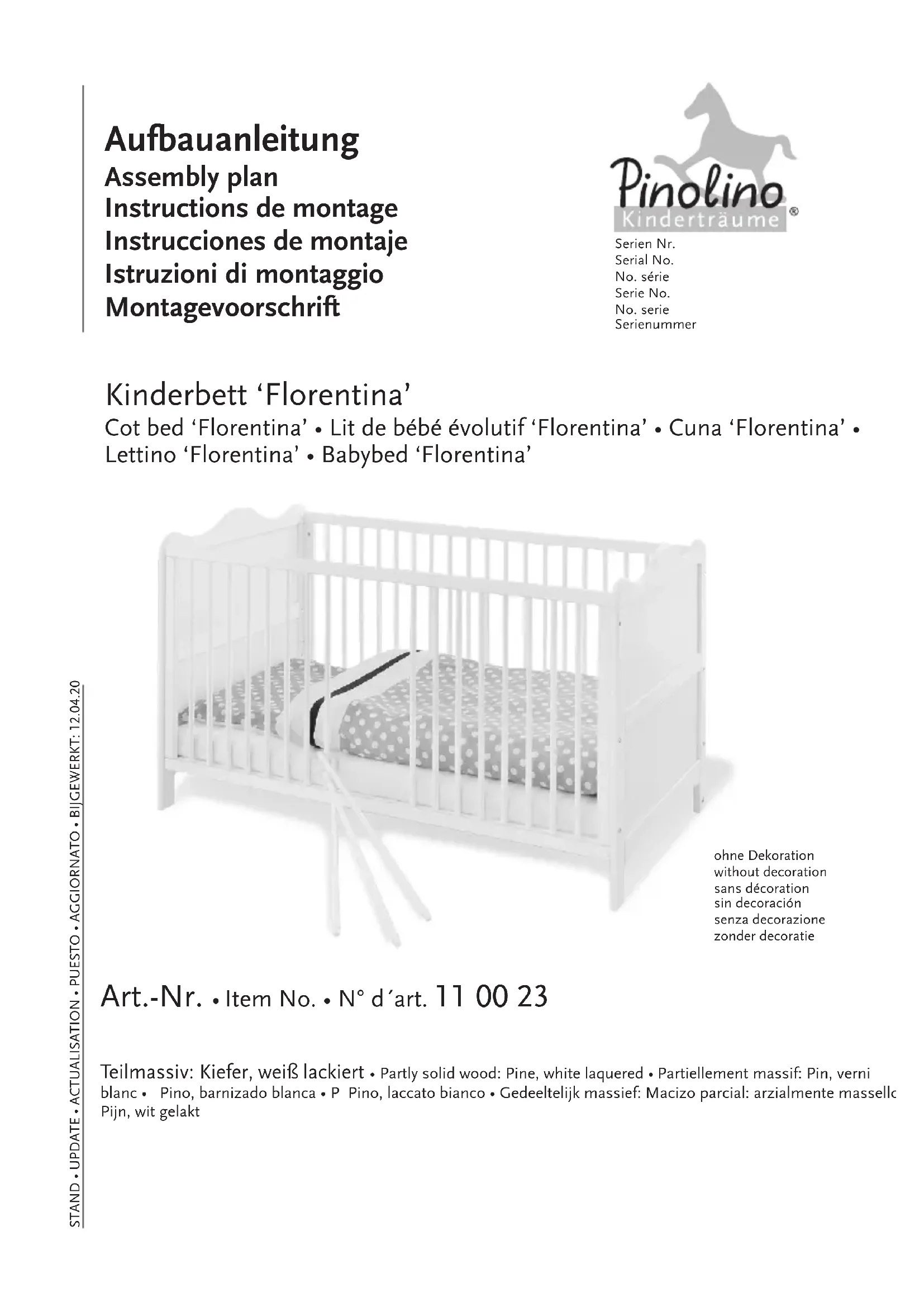 Florentina - Lit bébé Pinolino - Notice d'utilisation et mode d'emploi gratuit