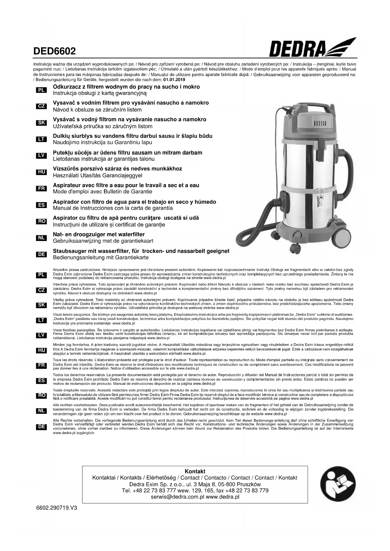Tous les droits réservés. L'élaboration présente est protégée par le droit d'auteur. Toute représentation ou reproduction du Mode d'emploi partielle ou intégrale sans consentement de Dedra Exim est interdite. Dedra Exim se réserve le droit d'introduire des modifications techniques de construction ou de complément sans avertissement. Ces modifications ne peuvent pas donner lieu à une réclamation. Notice d’utilisation accessible sur le site www.dedra.pl
