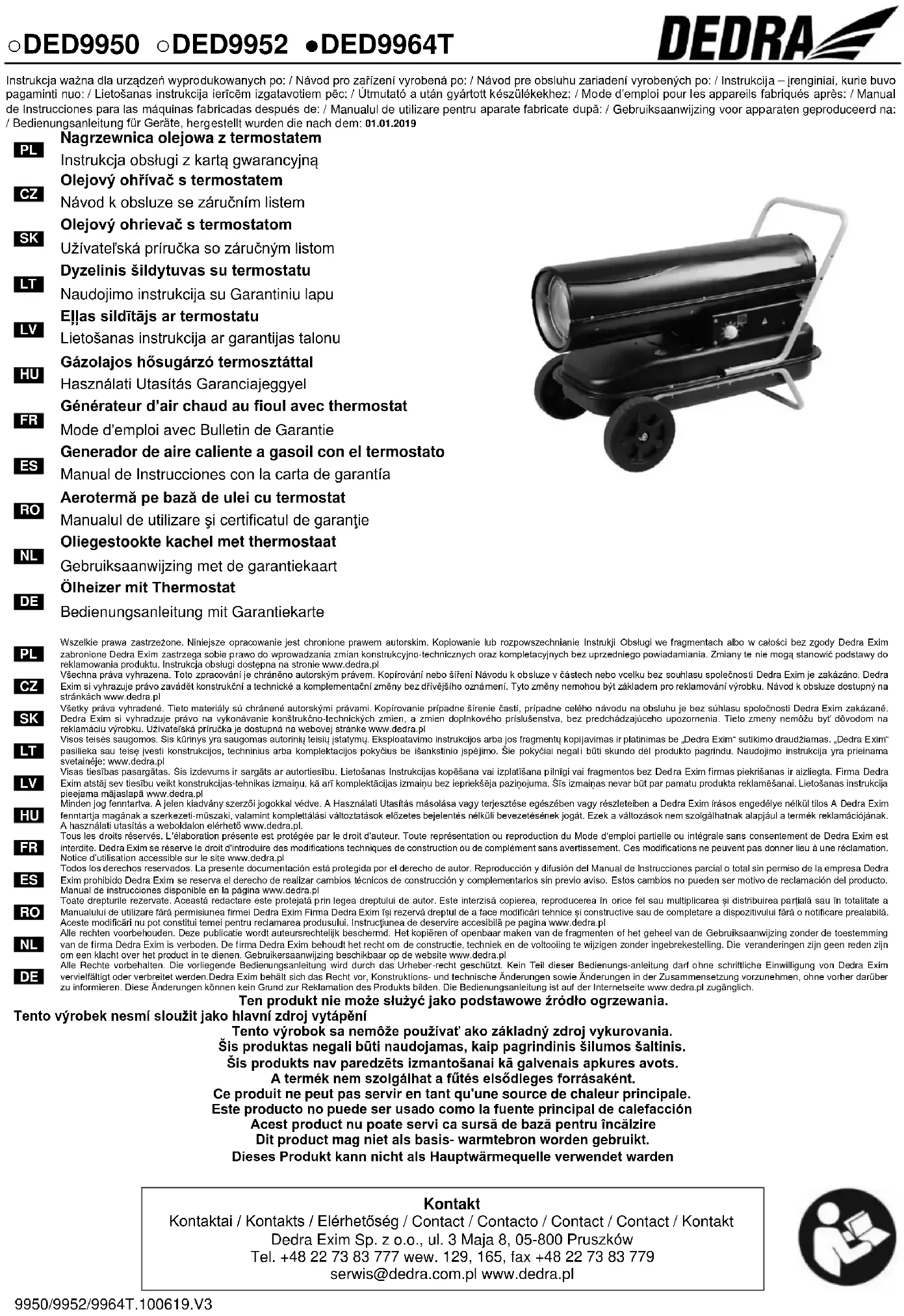 Générateur d’air chaud au fioul avec thermostat No de catalogue: DED9950, DED9952, DED9964T Numéro du lot: