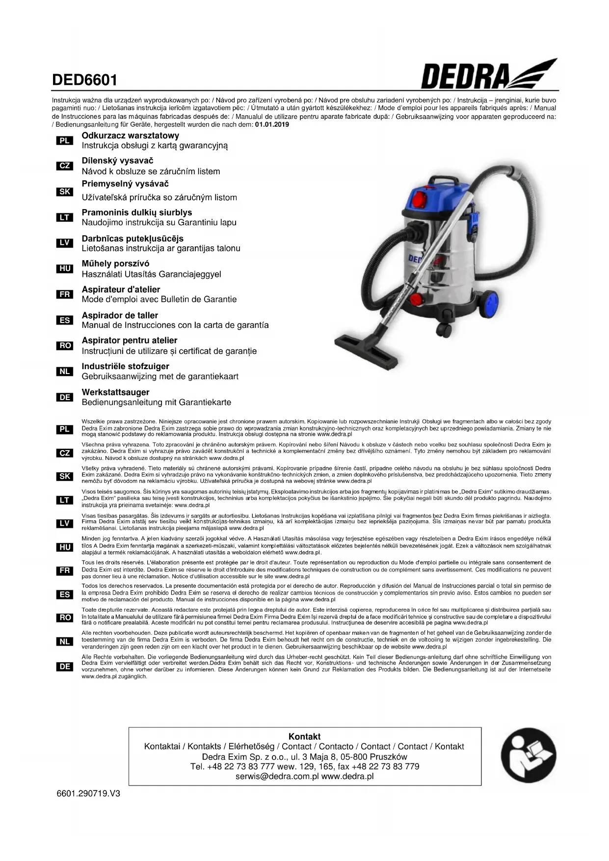 Tous les droits réservés. L'élaboration présente est protégée par le droit d'auteur. Toute représentation ou reproduction du Mode d'emploi partielle ou intégrale sans consentement de Dedra Exim est interdite. Dedra Exim se réserve le droit d'introduire des modifications techniques de construction ou de complément sans avertissement. Ces modifications ne peuvent pas donner lieu à une réclamation. Notice d’utilisation accessible sur le site www.dedra.pl