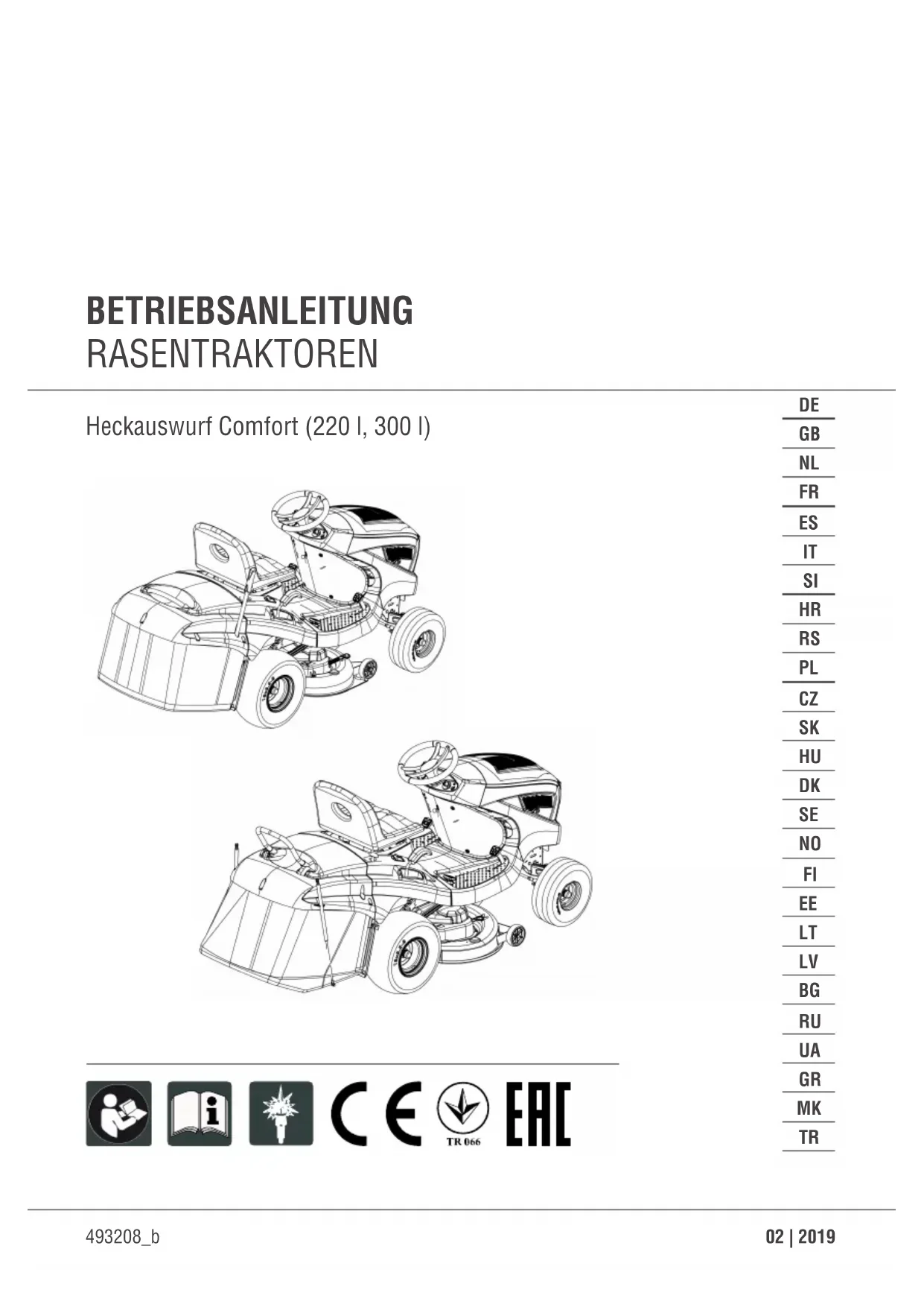 Les tondeuses autoportées sont disponibles en différentes variantes d’équipement. Veuil- lez noter SVP que les illustrations peuvent différer quelque peu des originaux. En cas de difficultés pour comprendre les descriptions, veuillez vous adresser à un atelier spécialisé ou au fabricant.