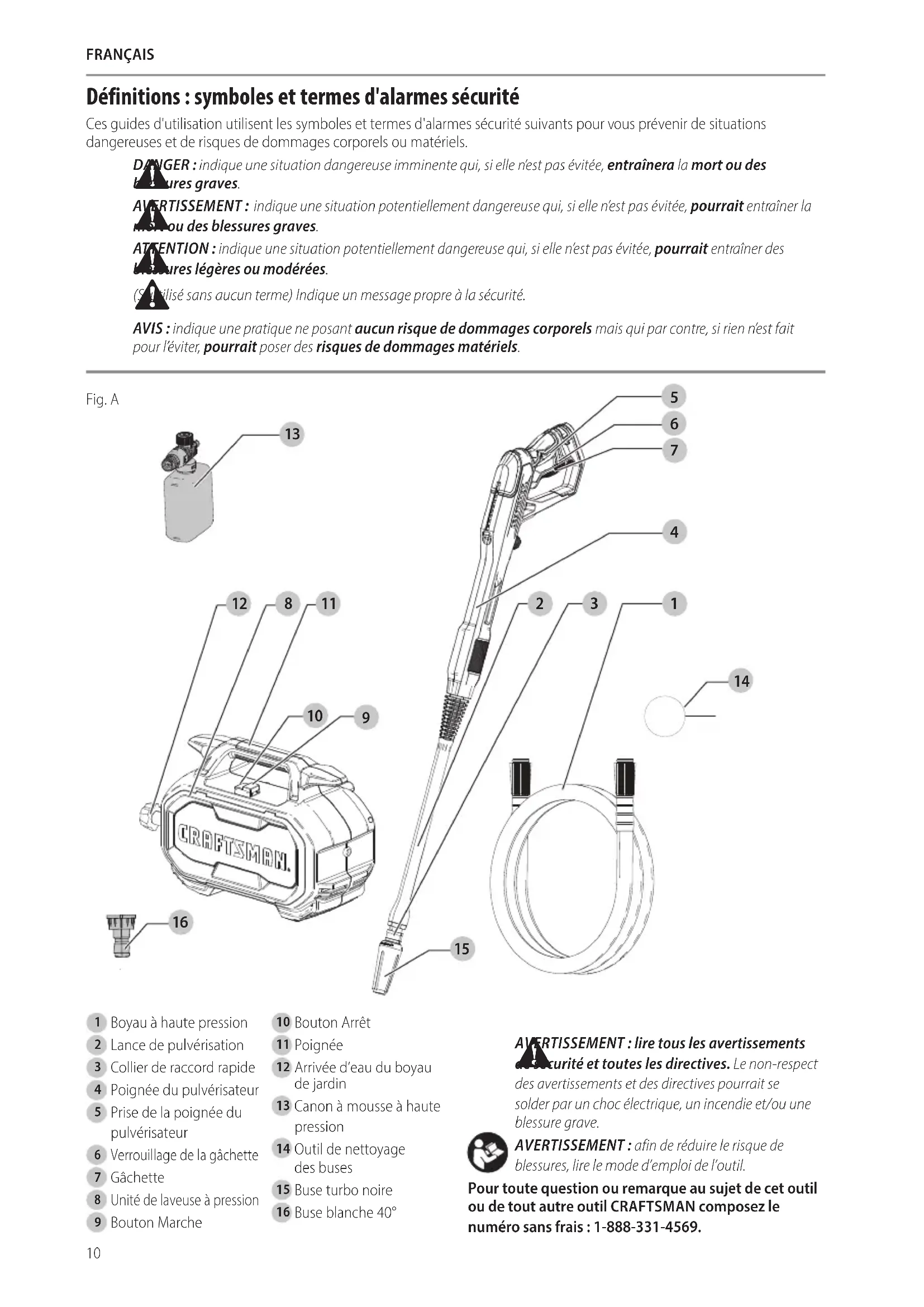 blessures, lire le mode d’emploi del’outil. Pour toute question ou remarque au sujet de cet outil ou de tout autre outil CRAFTSMAN composez le numéro sans frais : 1-888-331-4569. Fig. A