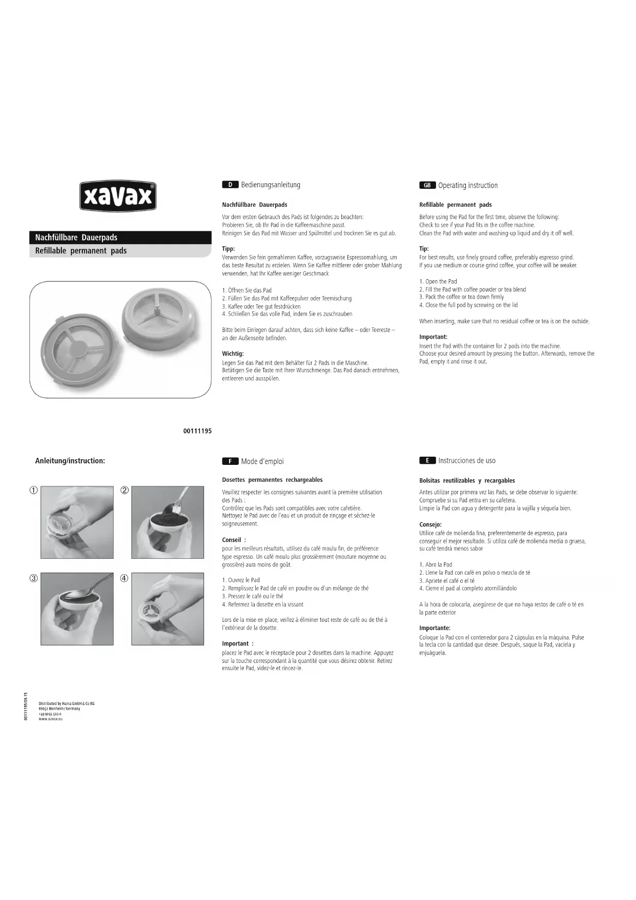 00111195 - Machine à café Xavax - Notice d'utilisation et mode d'emploi gratuit
