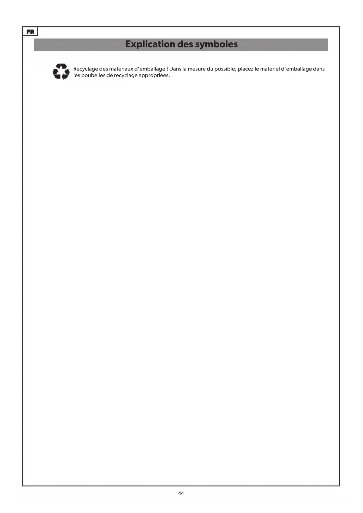 Abréviations des noms de pays AE = Émirats Arabes Unis AL = Albanie AT = Autriche BE = Belgique CH = Suisse CZ = République Tchèque DE = Allemagne DK = Danemark ES = Espagne FI = Finlande FR = France GB = Royaume-Uni GR = Grèce HR = Croatie IT = Italie JP = Japon KR = Corée NL = Pays-Bas NO = Norvège PL = Pologne PT = Portugal RO = Roumanie RU = Russie RS = Serbie SI = Slovénie SK = Slovaquie SE = Suède TR = Turquie ZA = Afrique du Sud4747 L’écrou de tuyau NF qui se raccorde au barbecue est la bande de roulement G ½” RH Le filetage d’entrée de gaz BBQ est G ½” RH FR système