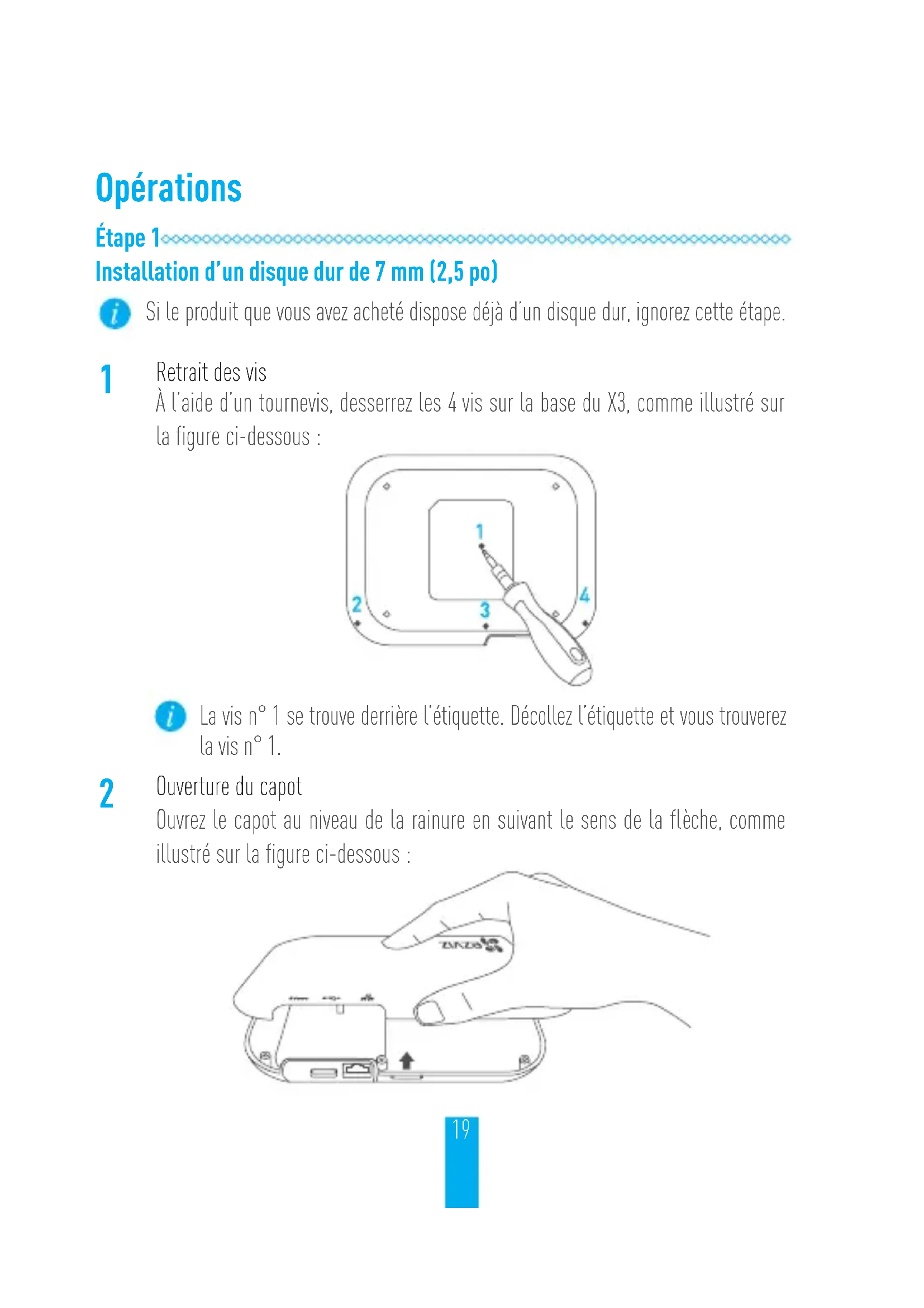 Fin de l’installation Remontez le capot et serrez les 4vis mentionnées à l’étape 1, puis terminez l’installation.21 Étape 2 Démarrage du X3