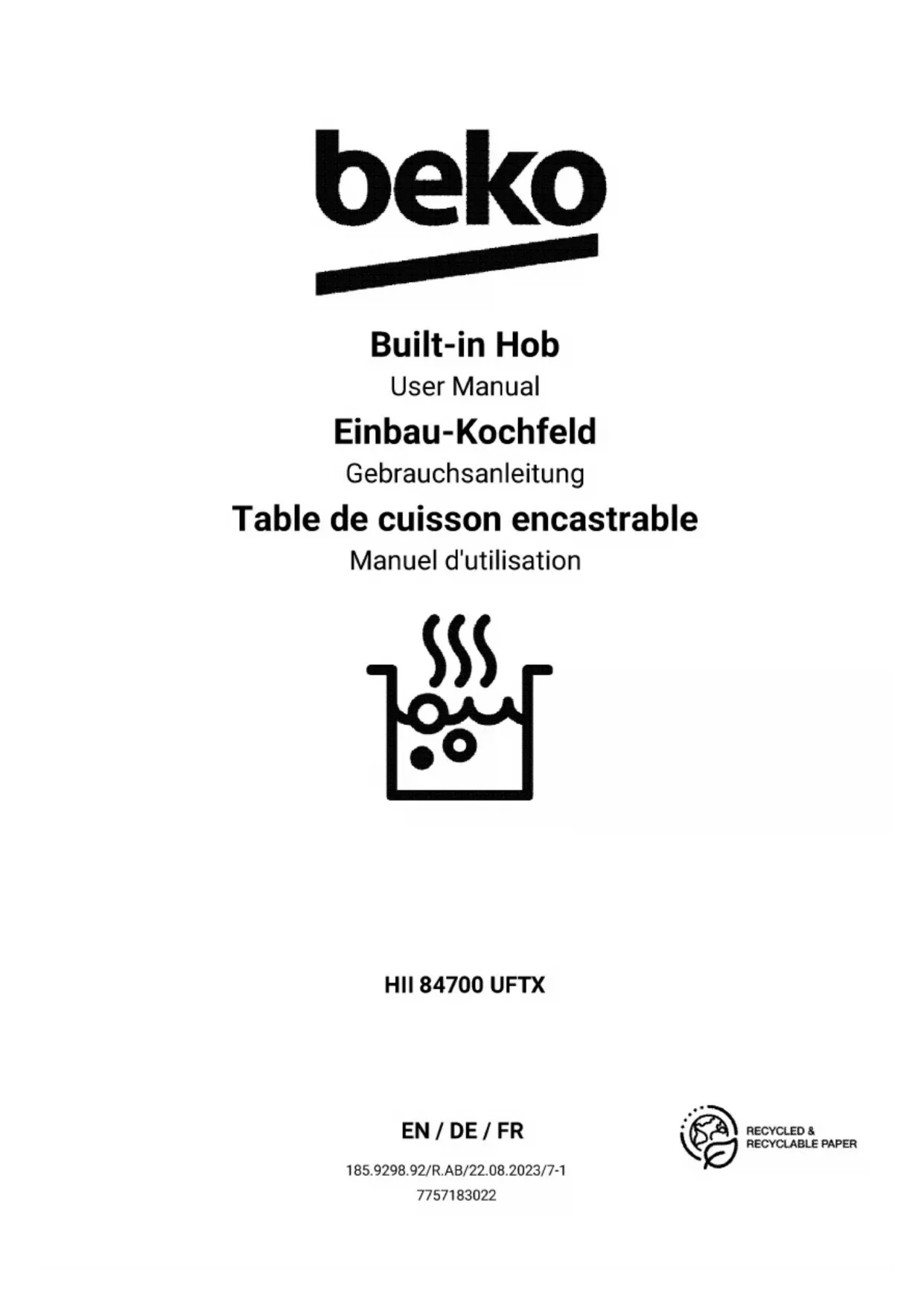 Retrouvez gratuitement la notice de l'appareil HII 84700 UFTX BEKO au format PDF.