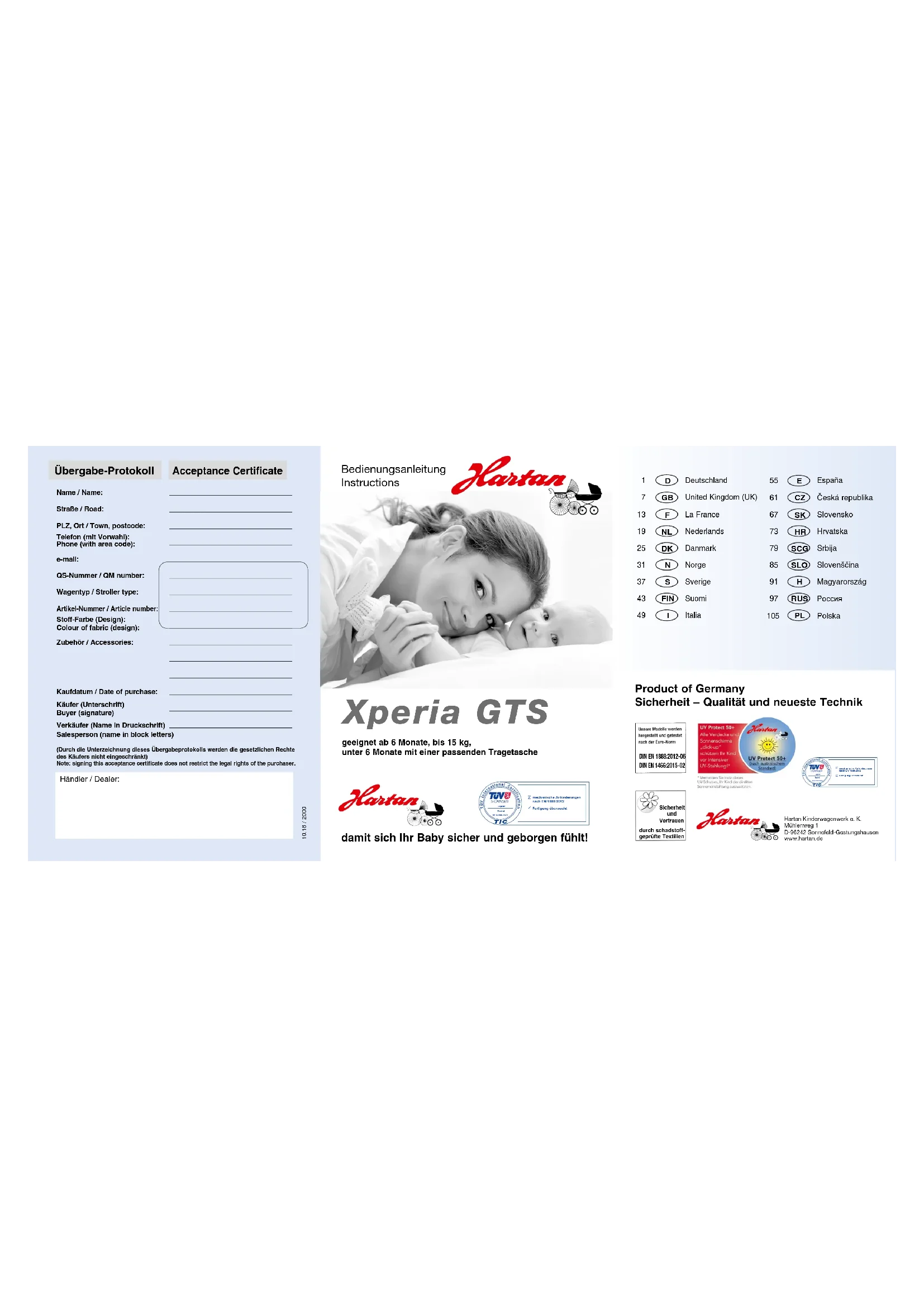 Xperia GTS - Poussette HARTAN - Notice d'utilisation et mode d'emploi gratuit