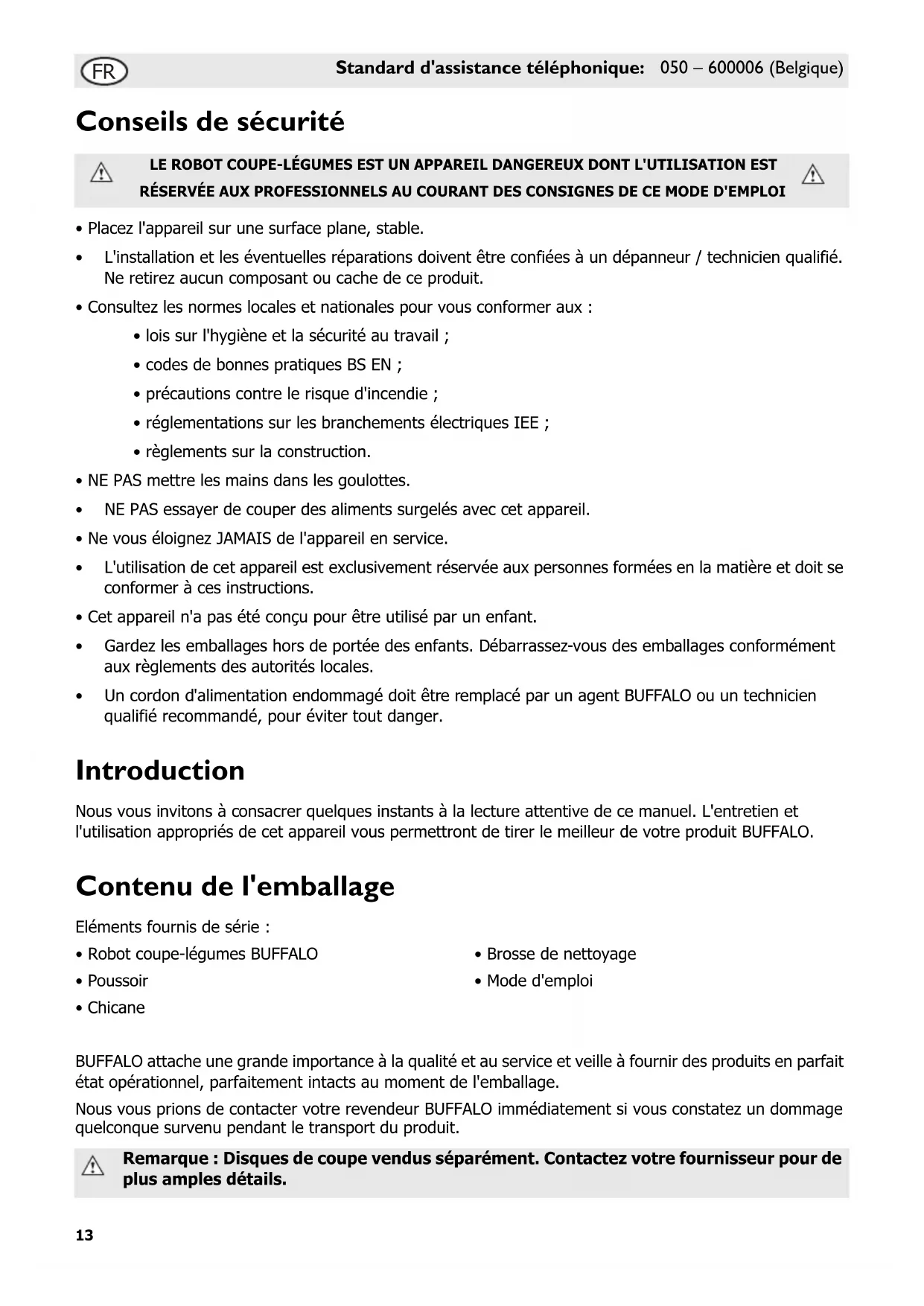 LE ROBOT COUPE-LEGUMES EST UN APPAREIL DANGEREUX DONT L'UTILISATION EST RÉSERVÉE AUX PROFESSIONNELS AU COURANT DES CONSIGNES DE CE MODE D'EMPLOI