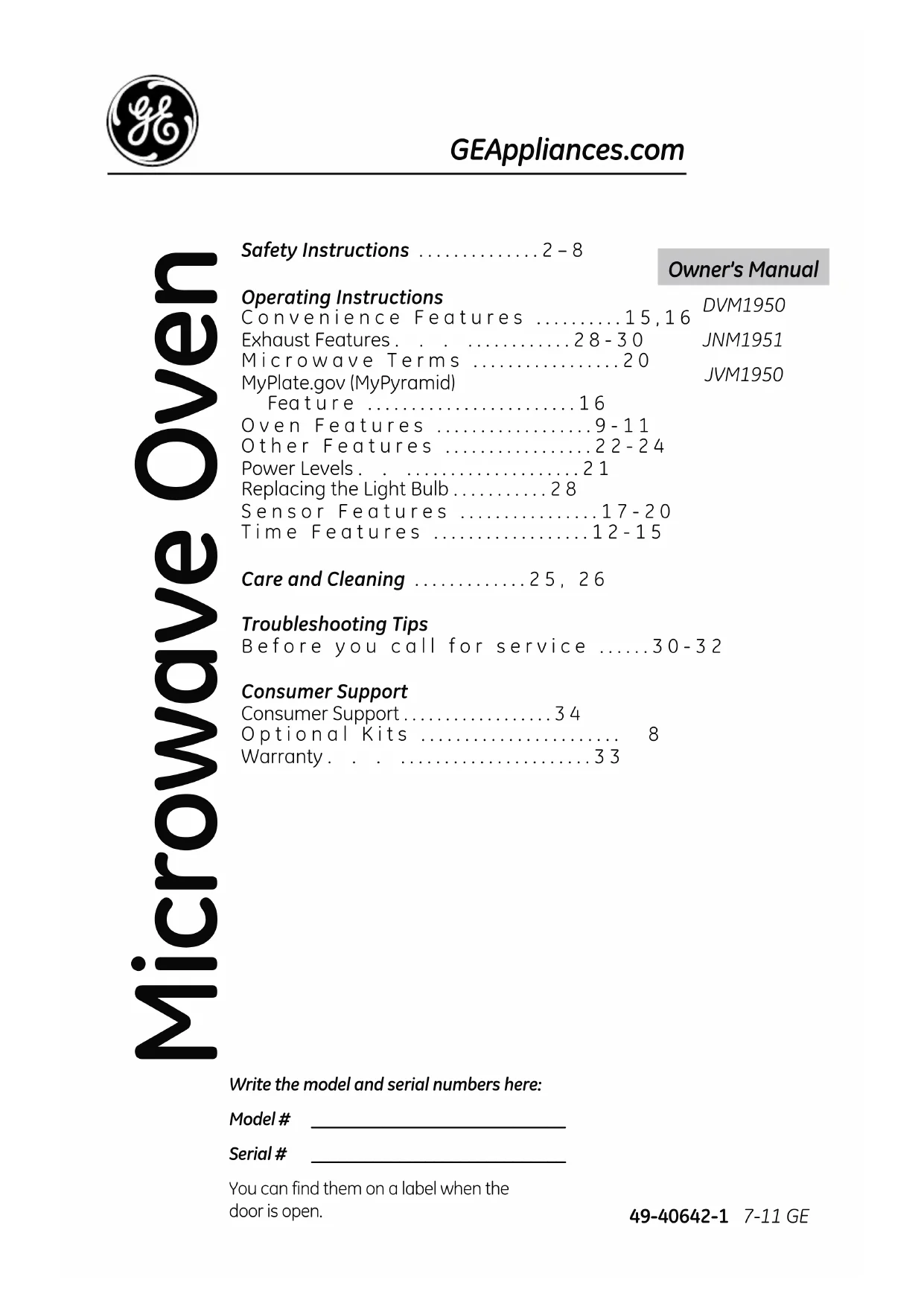 Adora DVM1950SRSS - Four à micro-ondes GE - Notice d'utilisation et mode d'emploi gratuit