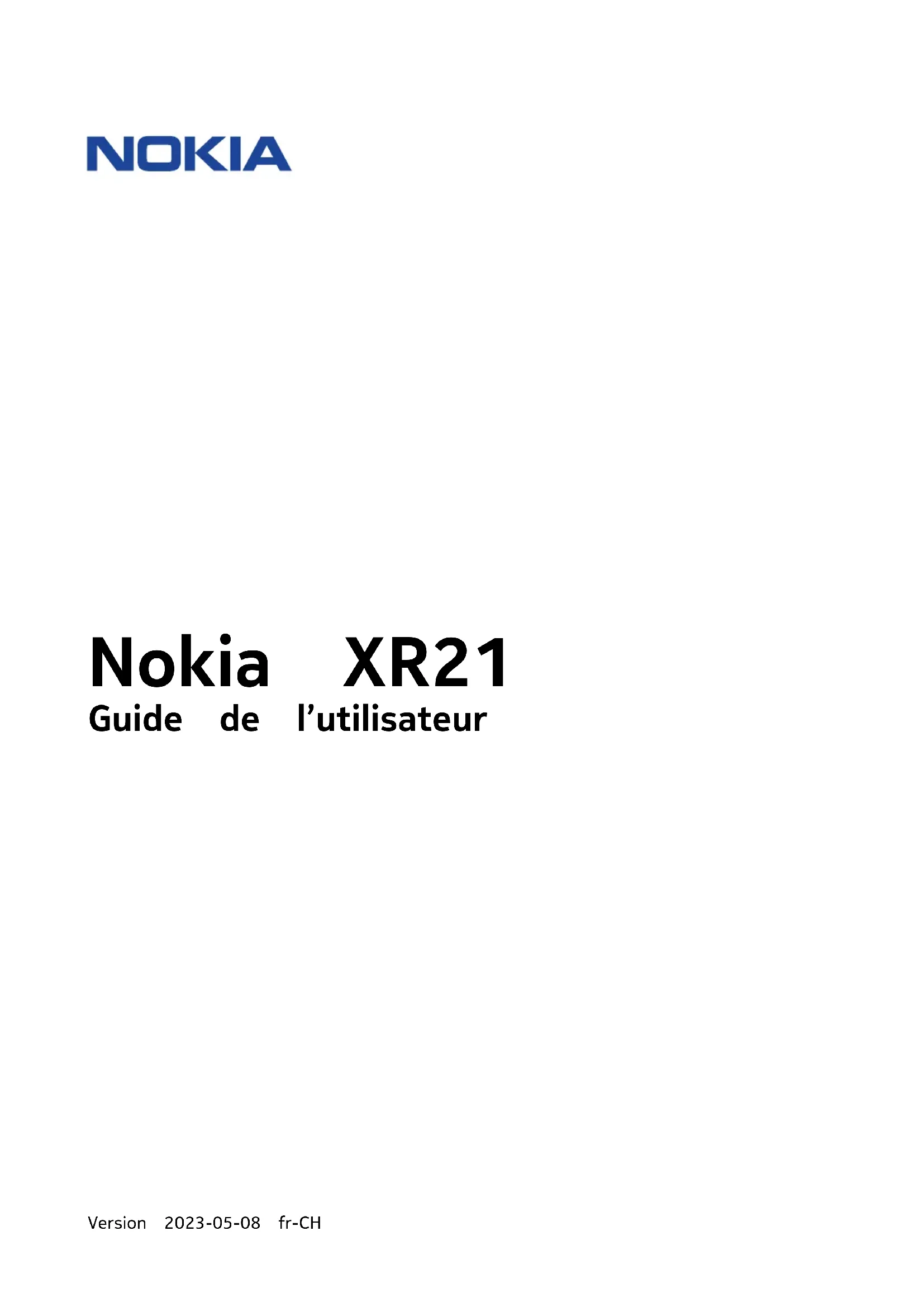 - Nokia XR21 Guide de l’utilisateur Version 2023-05-08 fr-CHNokia XR21 Guide de l'utilisateur Sommaire 1 À propos de ce guide d’utilisation 5 2 Prise en main 6 Gardez votre téléphone à jour p. 6