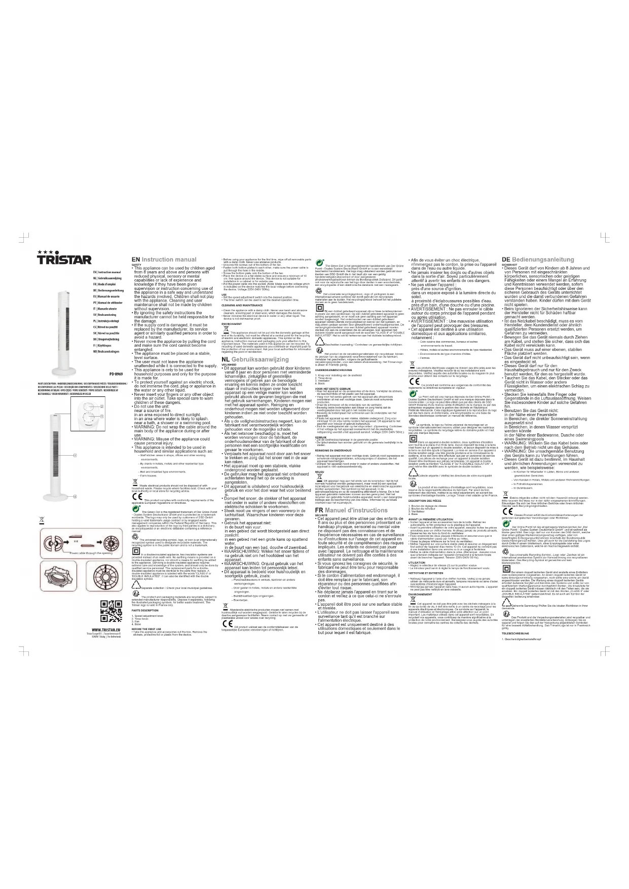 Téléchargez la notice de votre Ventilateur au format PDF gratuitement ! Retrouvez votre notice PD8969 - TRISTAR et reprennez votre appareil électronique en main. Sur cette page sont publiés tous les documents nécessaires à l'utilisation de votre appareil PD8969 de la marque TRISTAR.