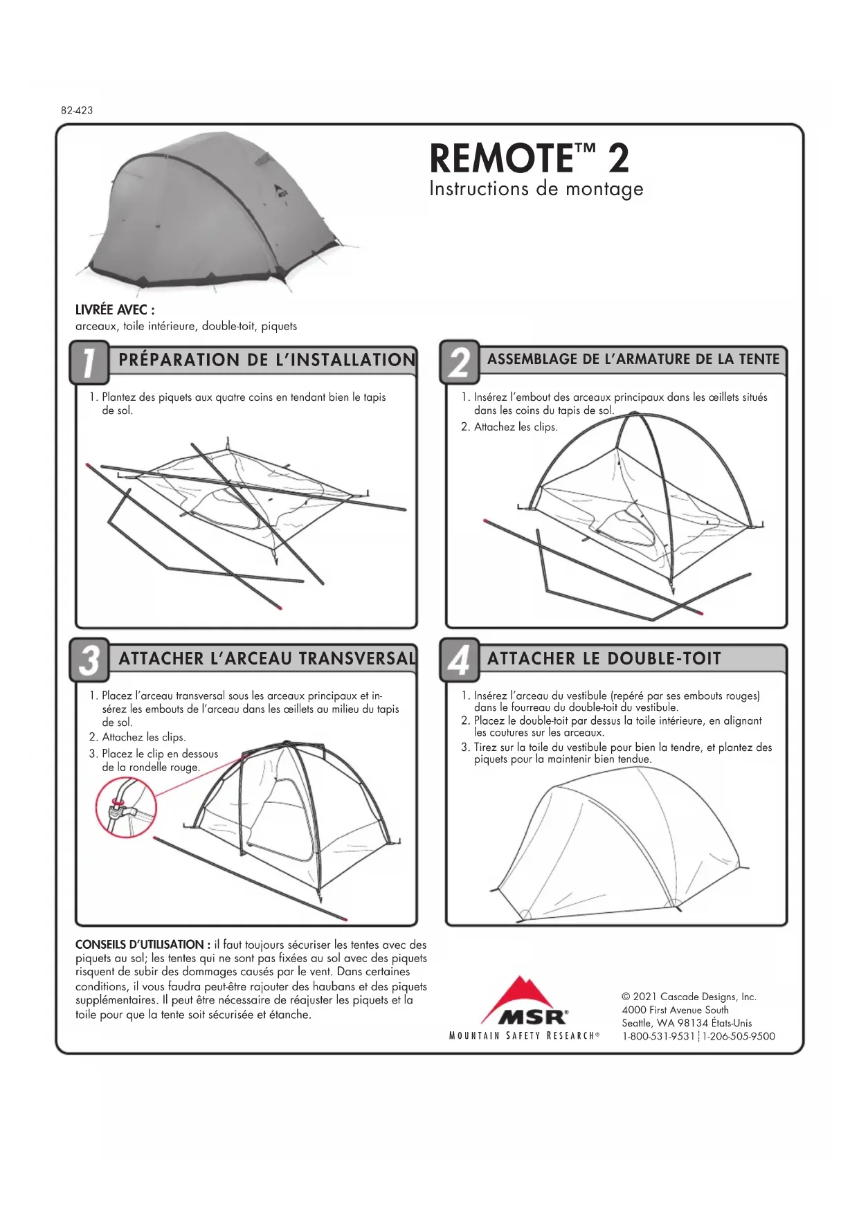 Remote 2 - Tente MSR - Notice d'utilisation et mode d'emploi gratuit