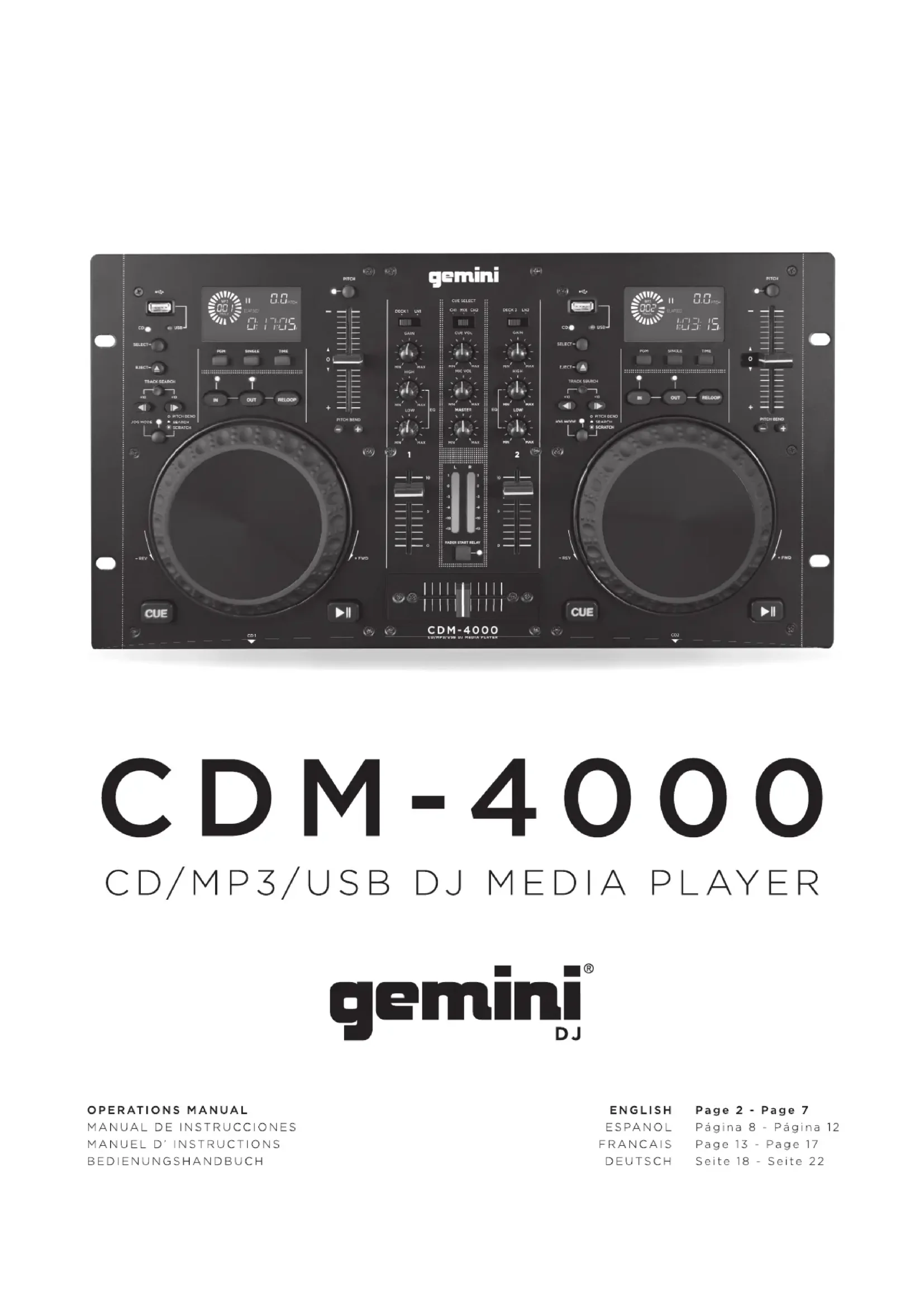 Retrouvez gratuitement la notice de l'appareil CDM4000BT GEMINI au format PDF.