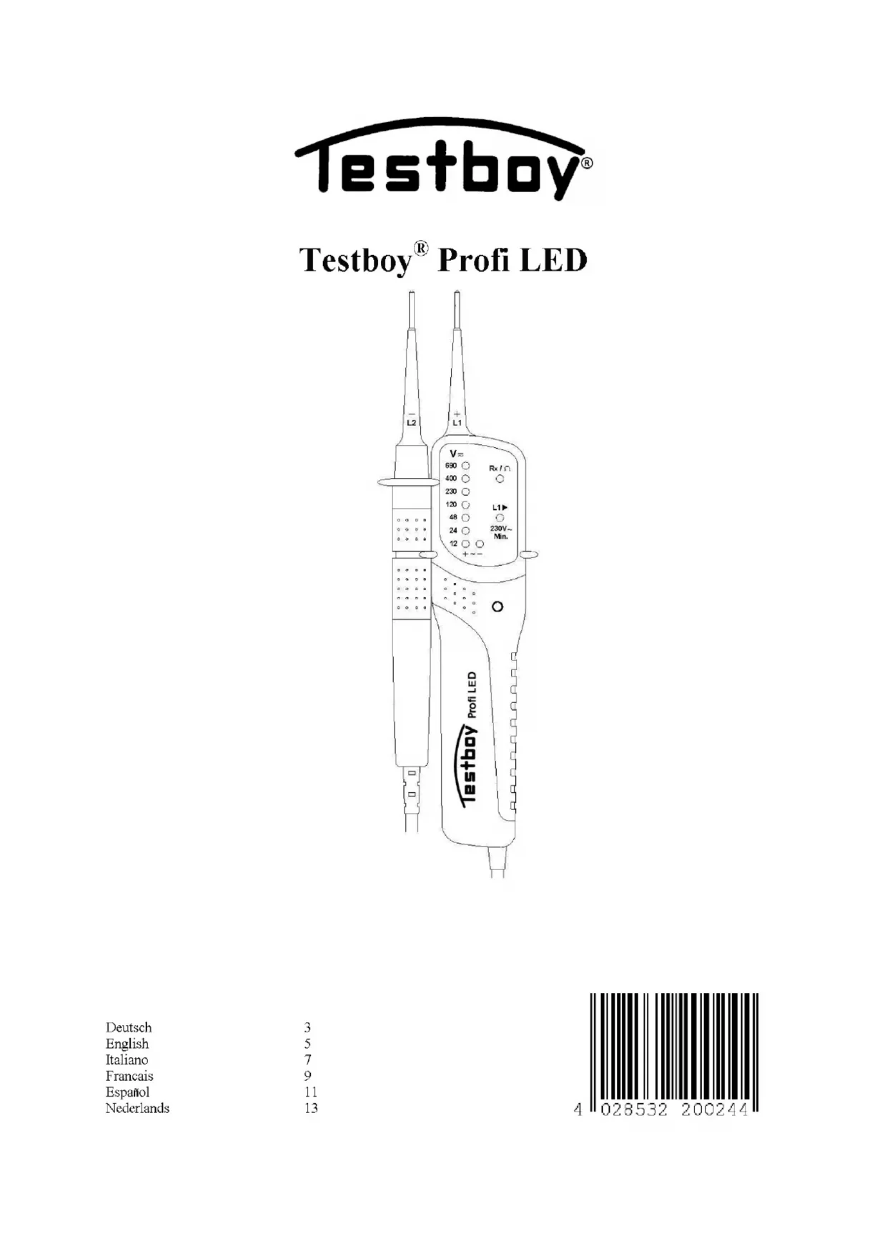 Retrouvez gratuitement la notice de l'appareil Profi LED Testboy au format PDF.
