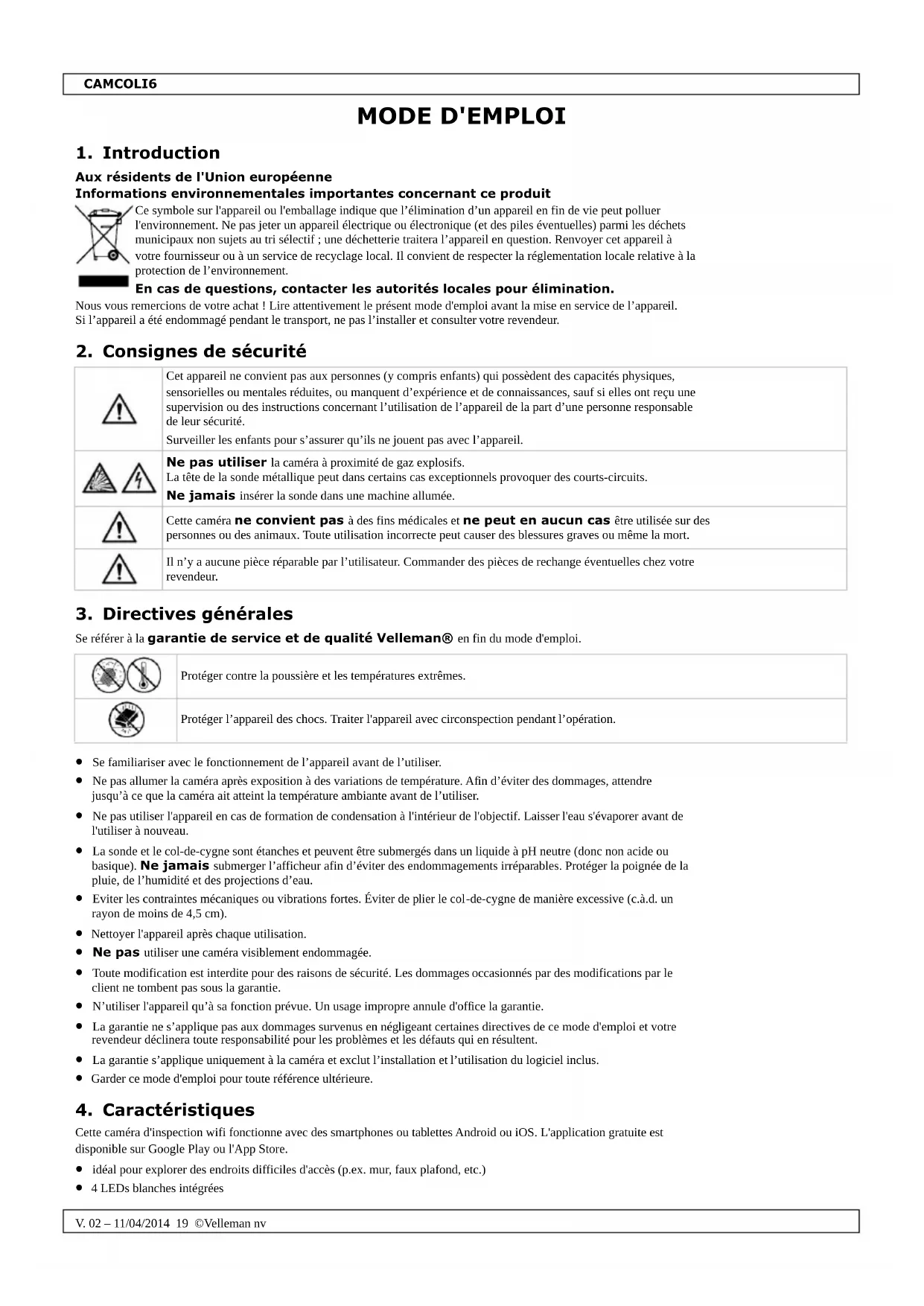 Retrouvez gratuitement la notice de l'appareil CAMCOLI6 VELLEMAN au format PDF.