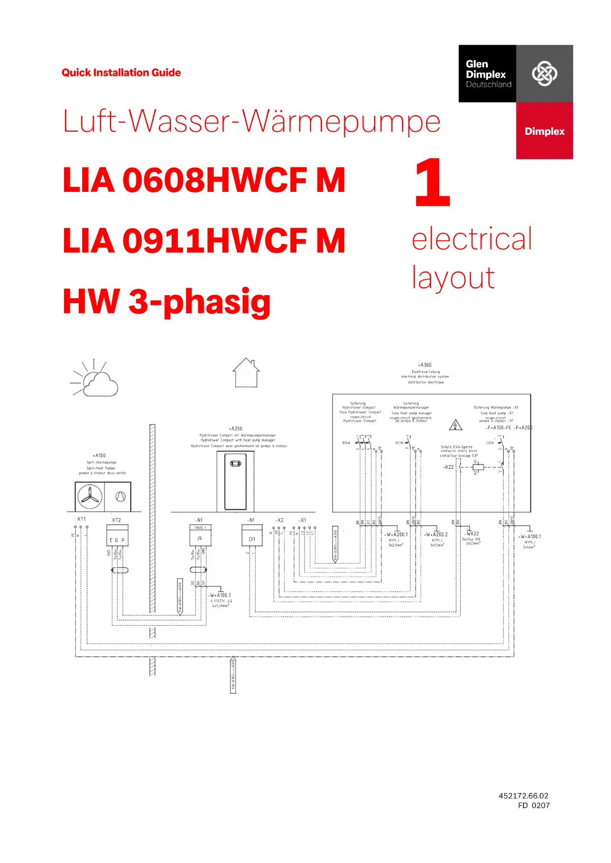 HW 3-phasig +A100+A200+A300Split-WärmepumpeSplit-Heat Pumpepompe à chaleur deux unitèsKW+A100<->+A200KW+A100<->+A300Hydrotower Compact mit WärmepumpenmanagerHydrotower Compact with heat pump managerHydrotower Compact avec gestionnaire de pompe à chaleurElektroverteilungelectrical distribution systemdistribution électrique