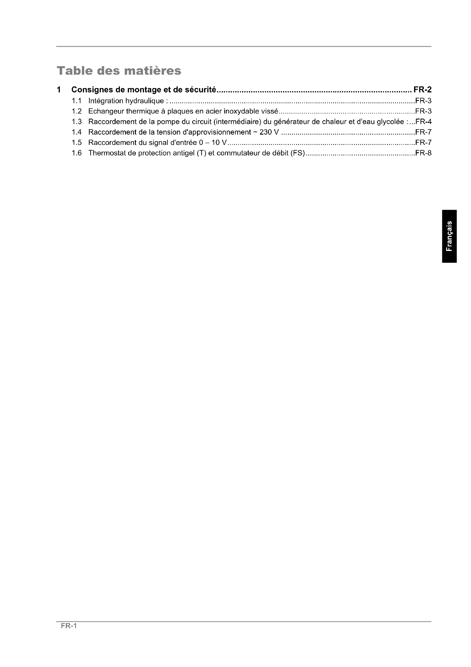 1.3 Raccordement de la pompe du circuit (intermédiaire) du générateur de chaleur et d'eau glycolée :...FR-4