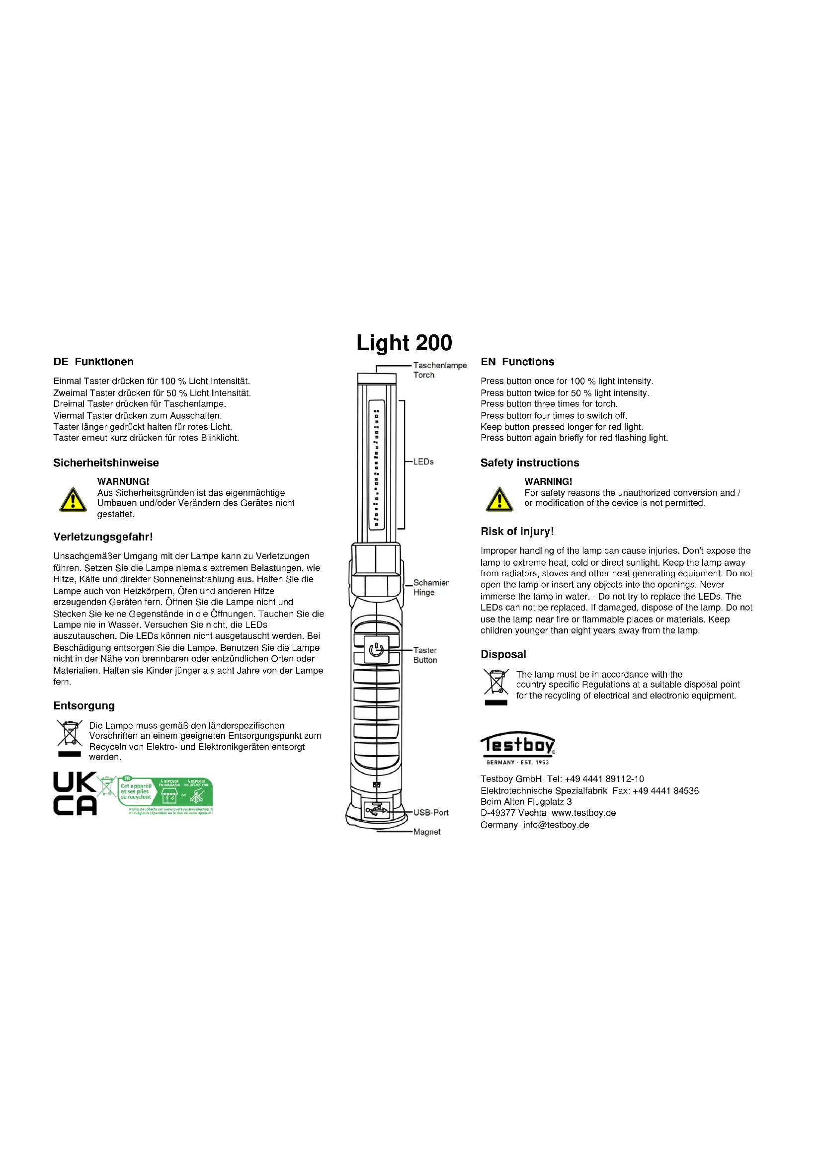 Retrouvez gratuitement la notice de l'appareil Light 200 Testboy au format PDF.