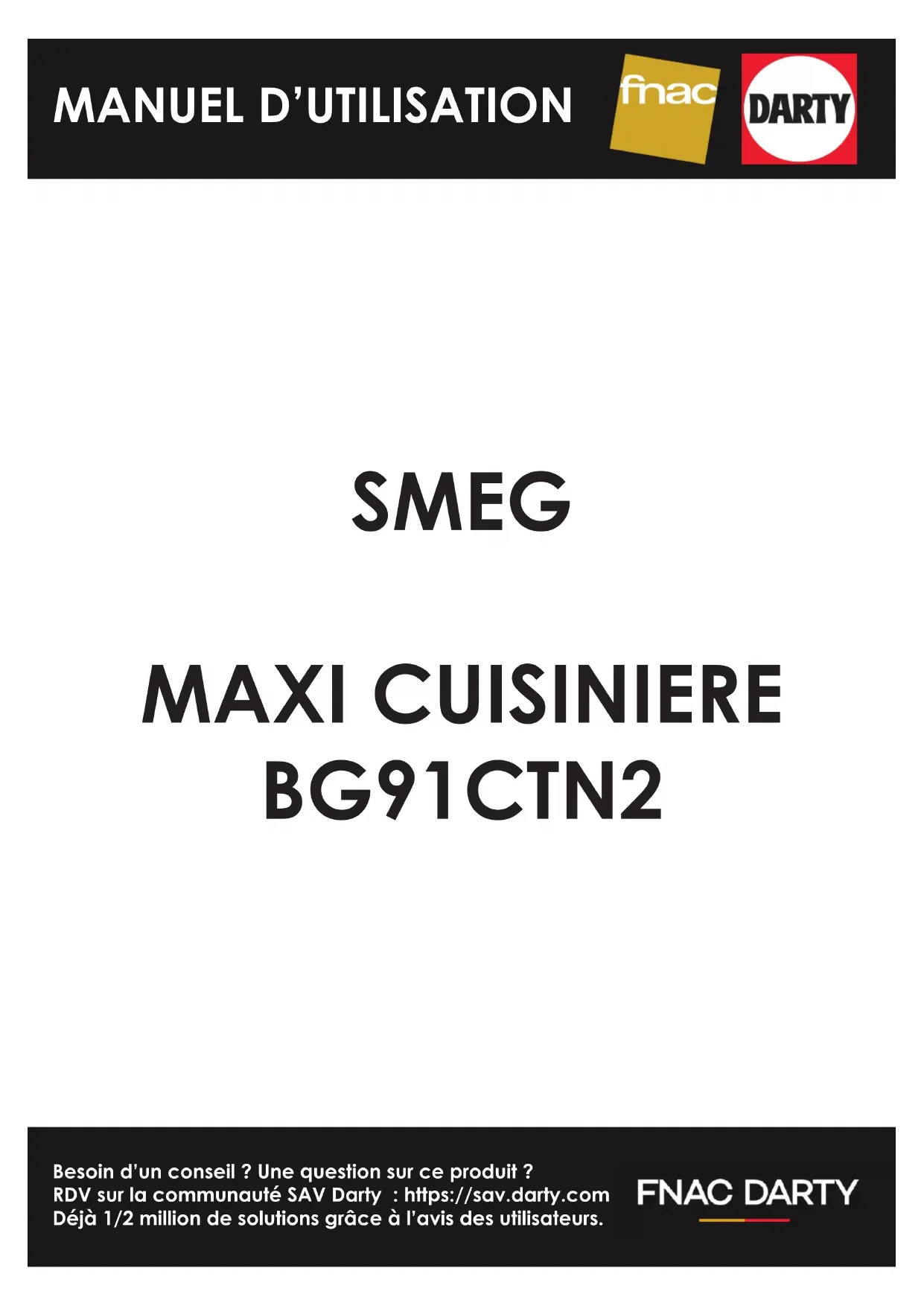 Besoin d’un conseil ? Une question sur ce produit ? RDV sur la communauté SAV Darty : https://sav.darty.com Déjà 1/2 million de solutions grâce à l’avis des utilisateurs. SMEG MAXI CUISINIERE BG91CTN2 MANUEL D’UTILISATIONSommaire
