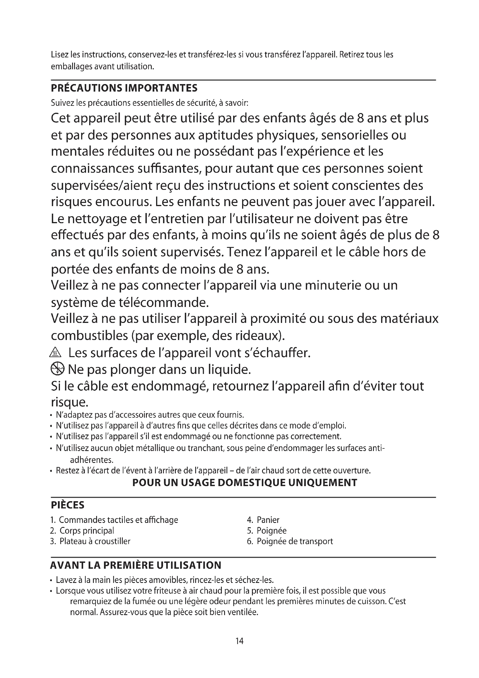 AE14 Lisez les instructions, conservez-les et transférez-les si vous transférez l’appareil. Retirez tous les emballages avant utilisation.