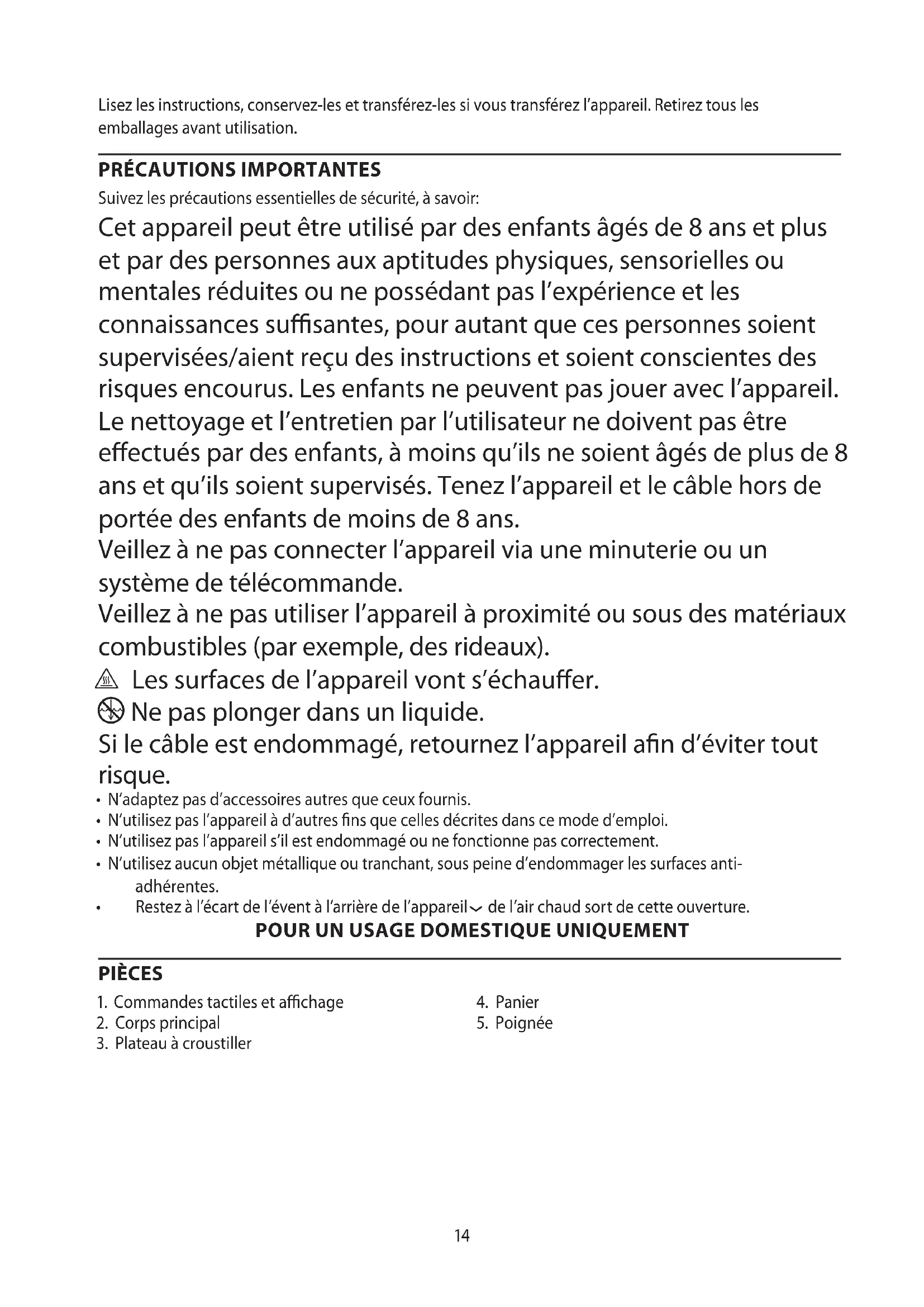 AE14 Lisez les instructions, conservez-les et transférez-les si vous transférez l’appareil. Retirez tous les emballages avant utilisation.
