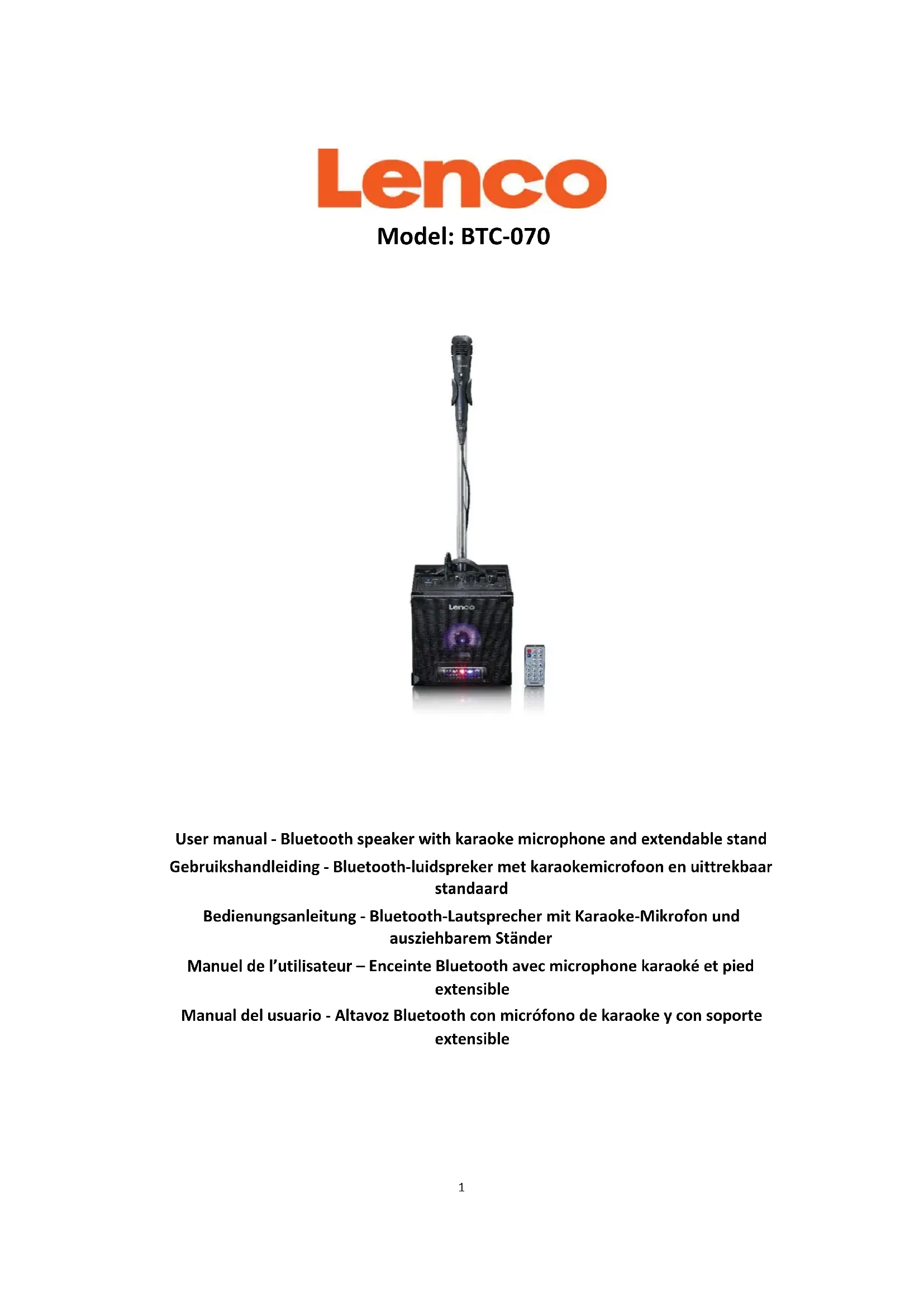 BTC-070 - Haut-parleur LENCO - Notice d'utilisation et mode d'emploi gratuit