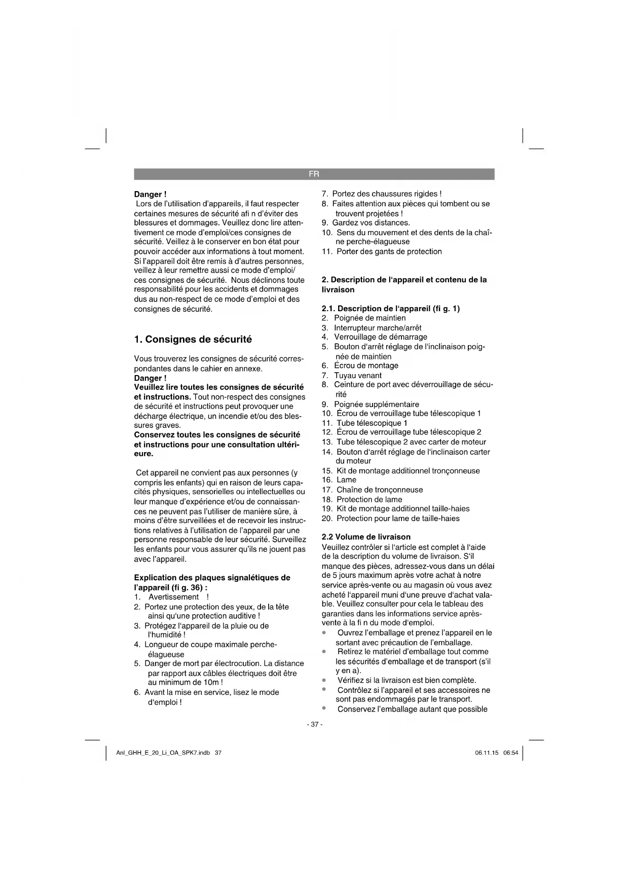 Utilisez uniquement des scies à chaîne en parfait état de fonctionnement ! Anl_GHH_E_20_Li_OA_SPK7.indb 43Anl_GHH_E_20_Li_OA_SPK7.indb 43 06.11.15 06:5406.11.15 06:54FR