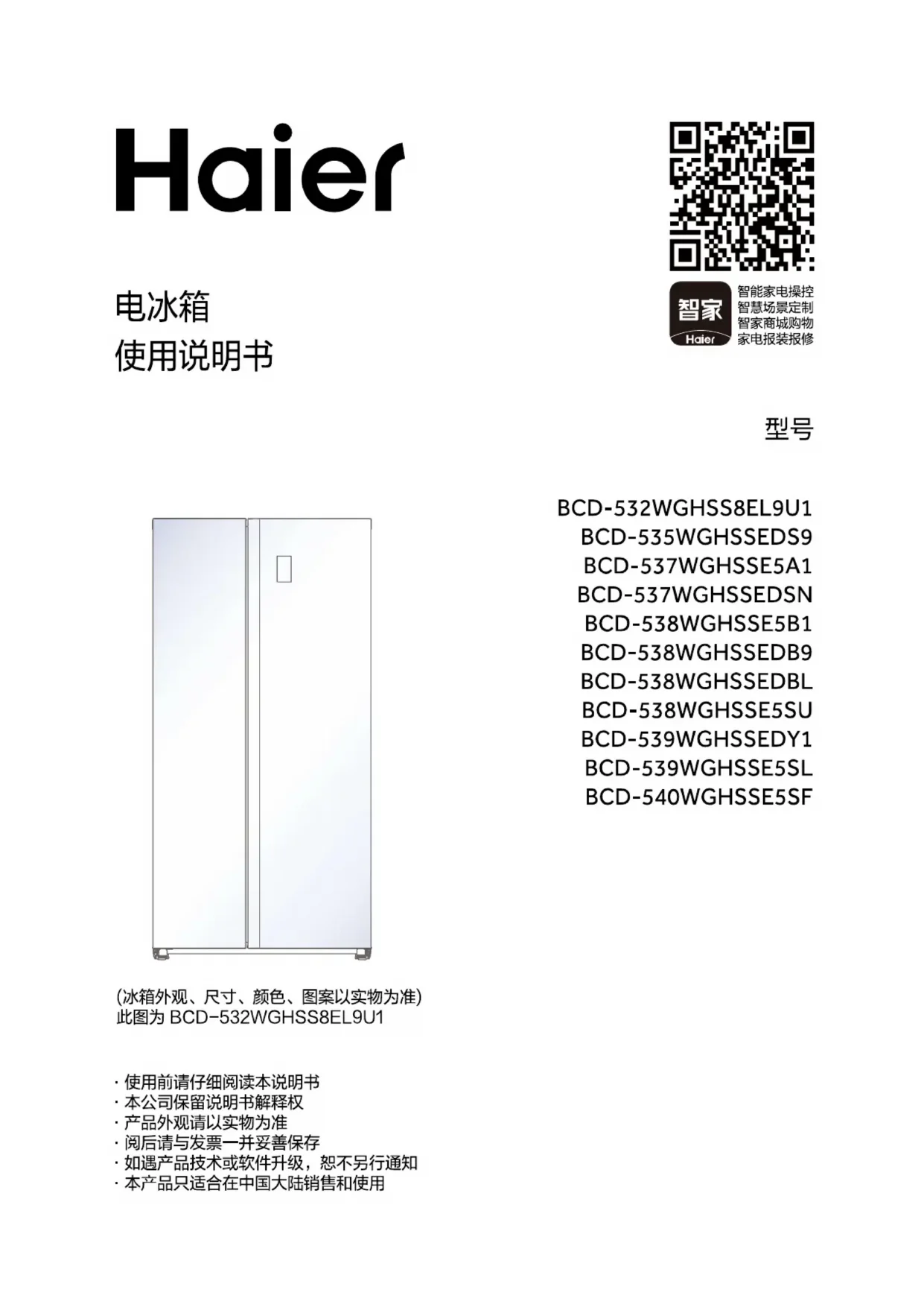BCD-537WGHSSEDSN - Réfrigérateur HAIER - Notice d'utilisation et mode d'emploi gratuit