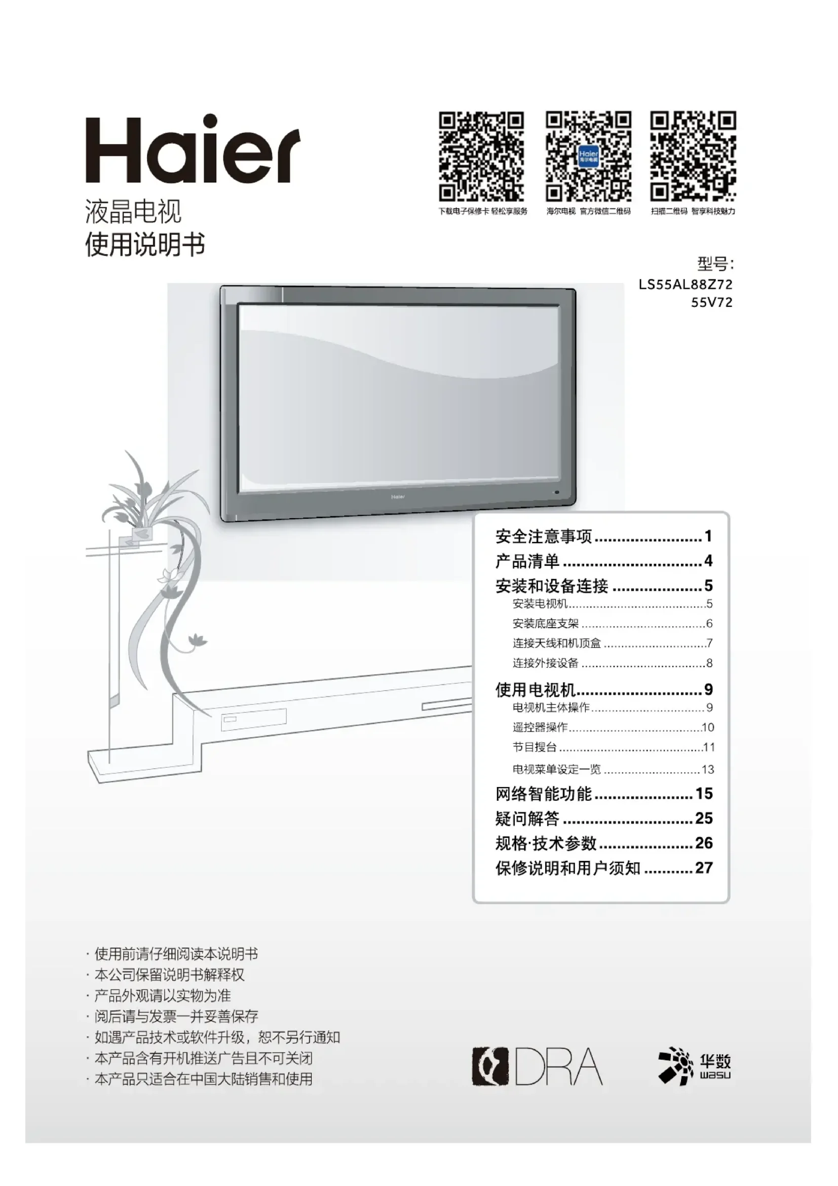 Retrouvez gratuitement la notice de l'appareil 55V72 HAIER au format PDF.
