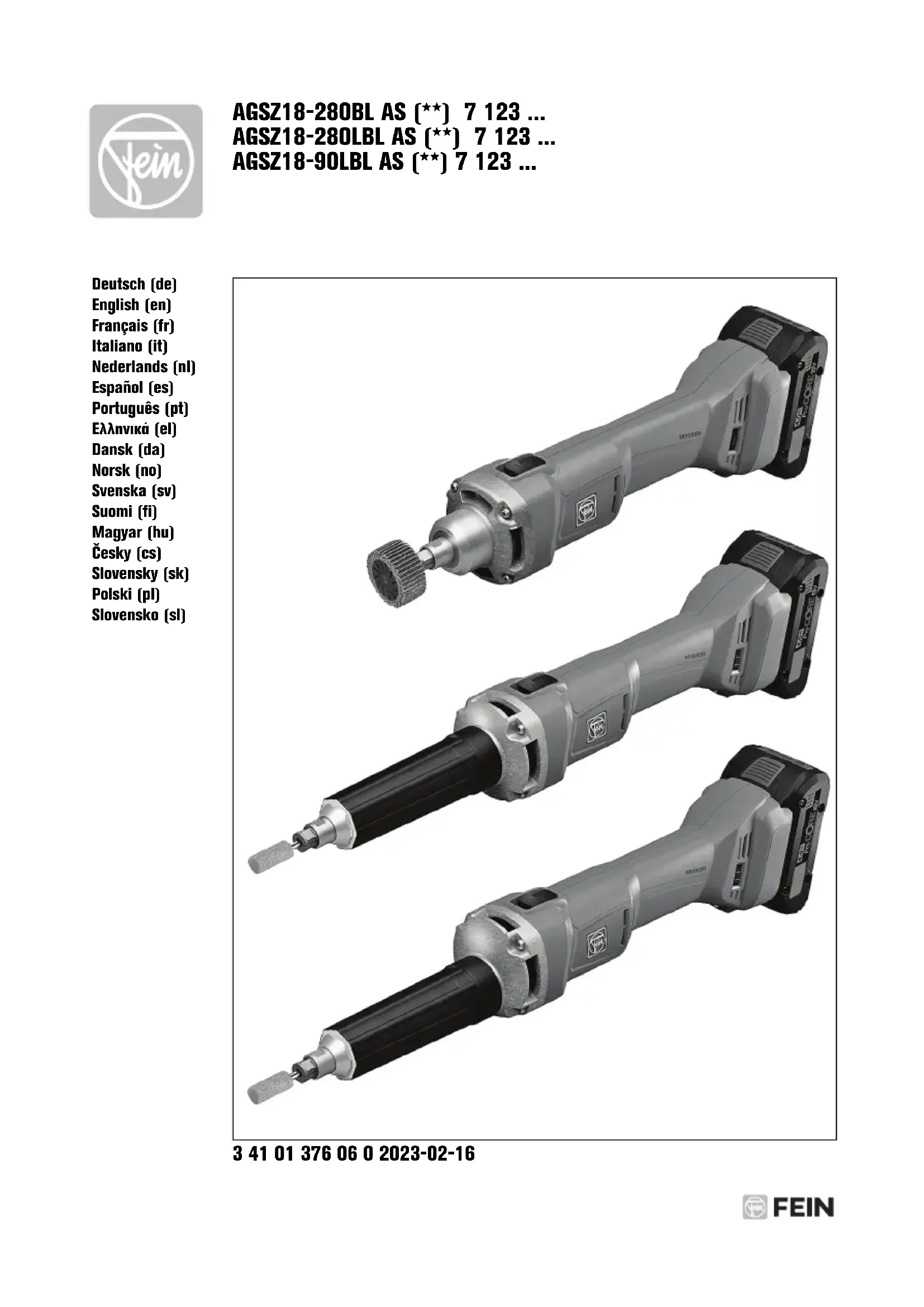 Retrouvez gratuitement la notice de l'appareil AGSZ 18-280 LBL AS Fein au format PDF.