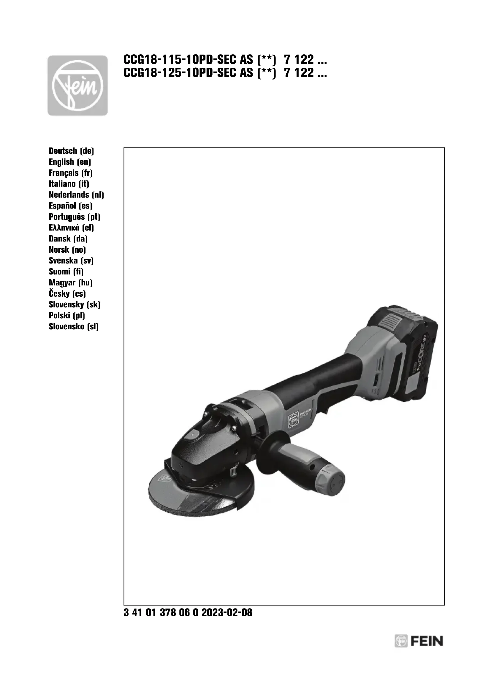 Retrouvez gratuitement la notice de l'appareil CCG 18-115-10 PD-SEC AS Fein au format PDF.