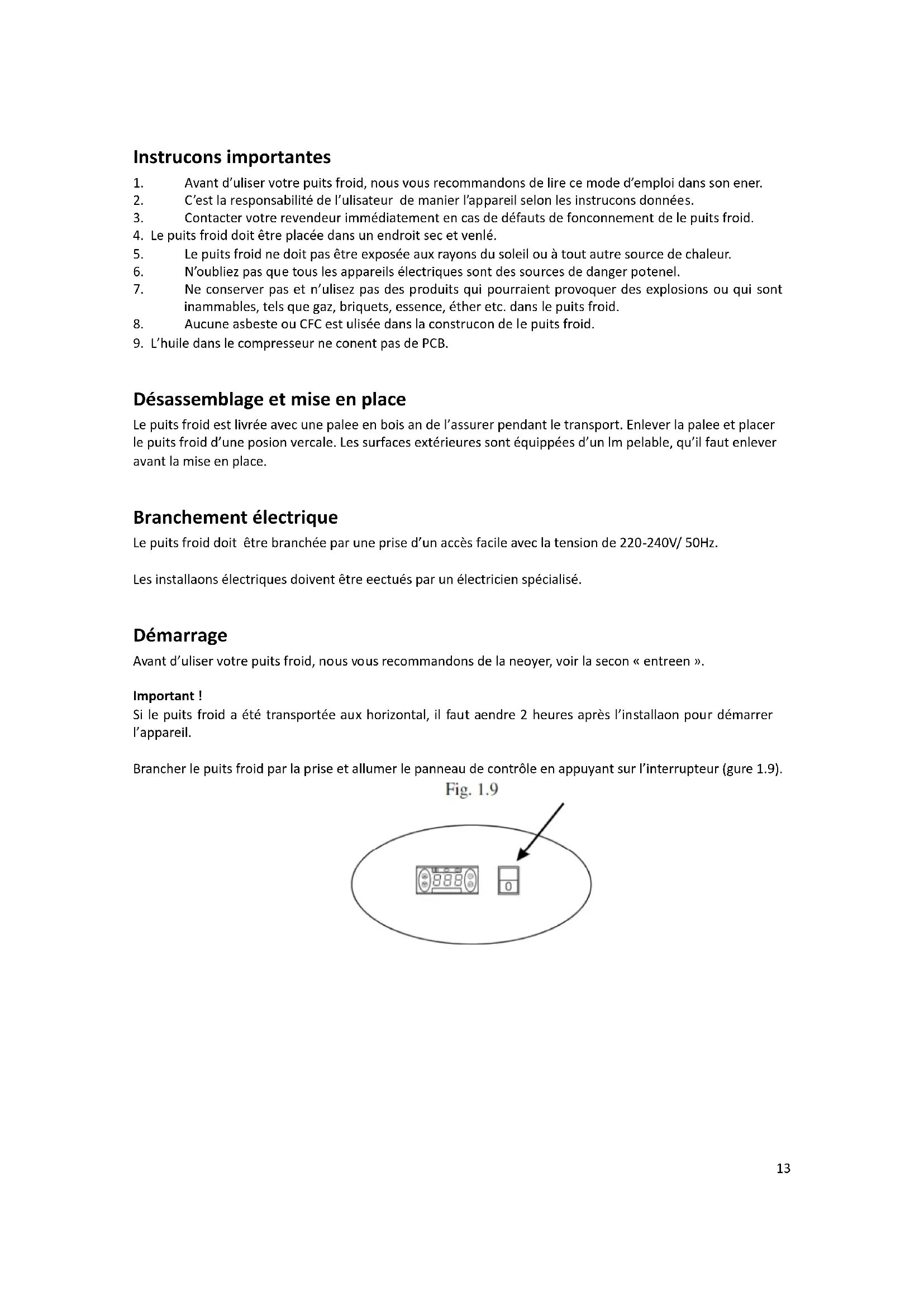 1. Avant d’utiliser votre puits froid, nous vous recommandons de lire ce mode d’emploi dans son entier.