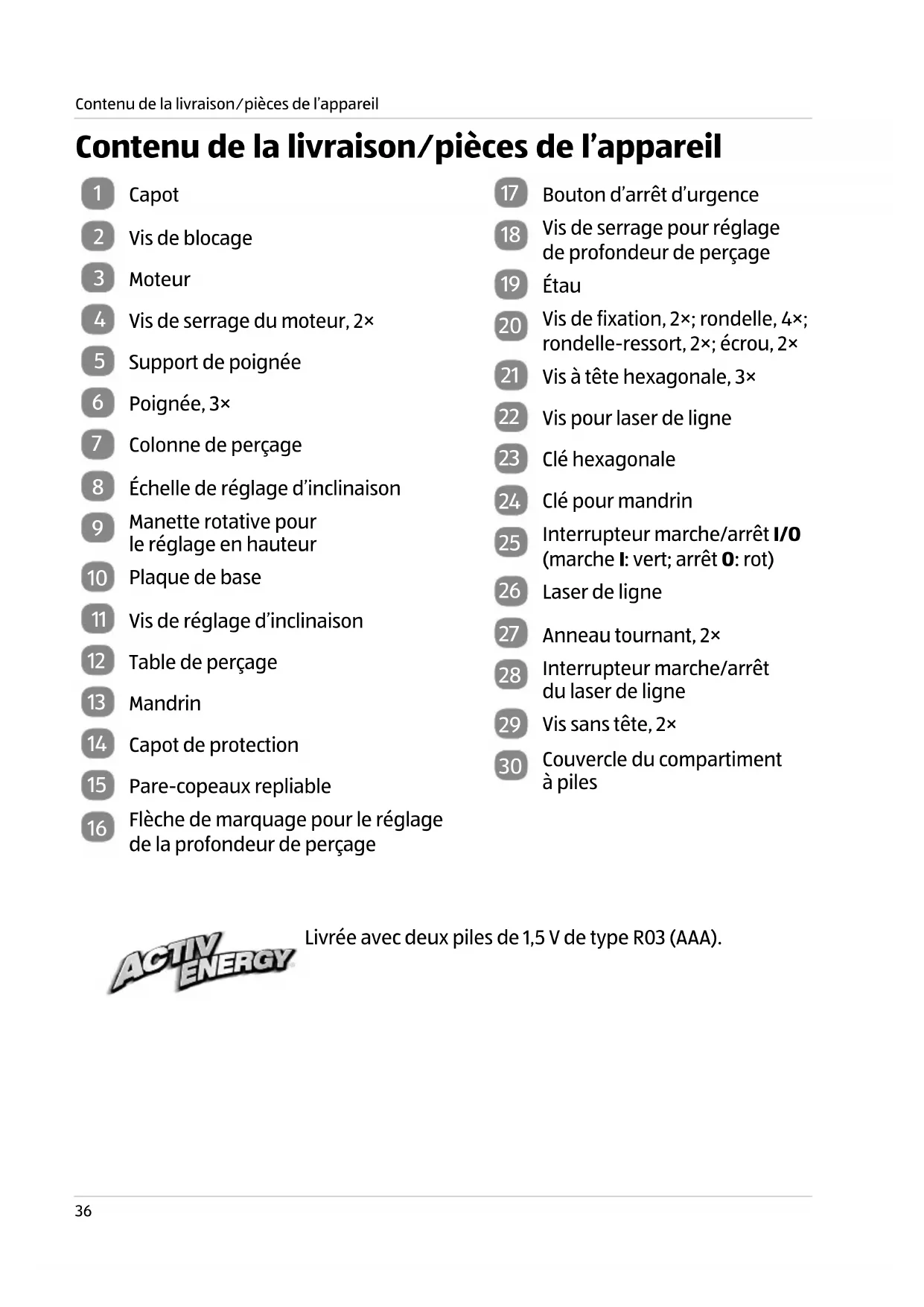Contenu de la livraison⁄pièces de l’appareil