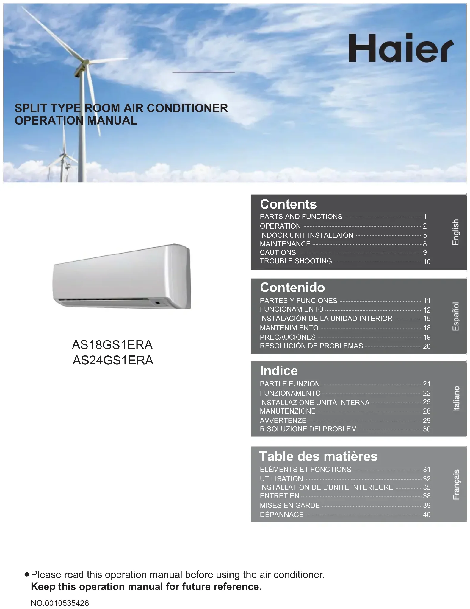 AS18GS1ERA - Climatisation HAIER - Notice d'utilisation et mode d'emploi gratuit