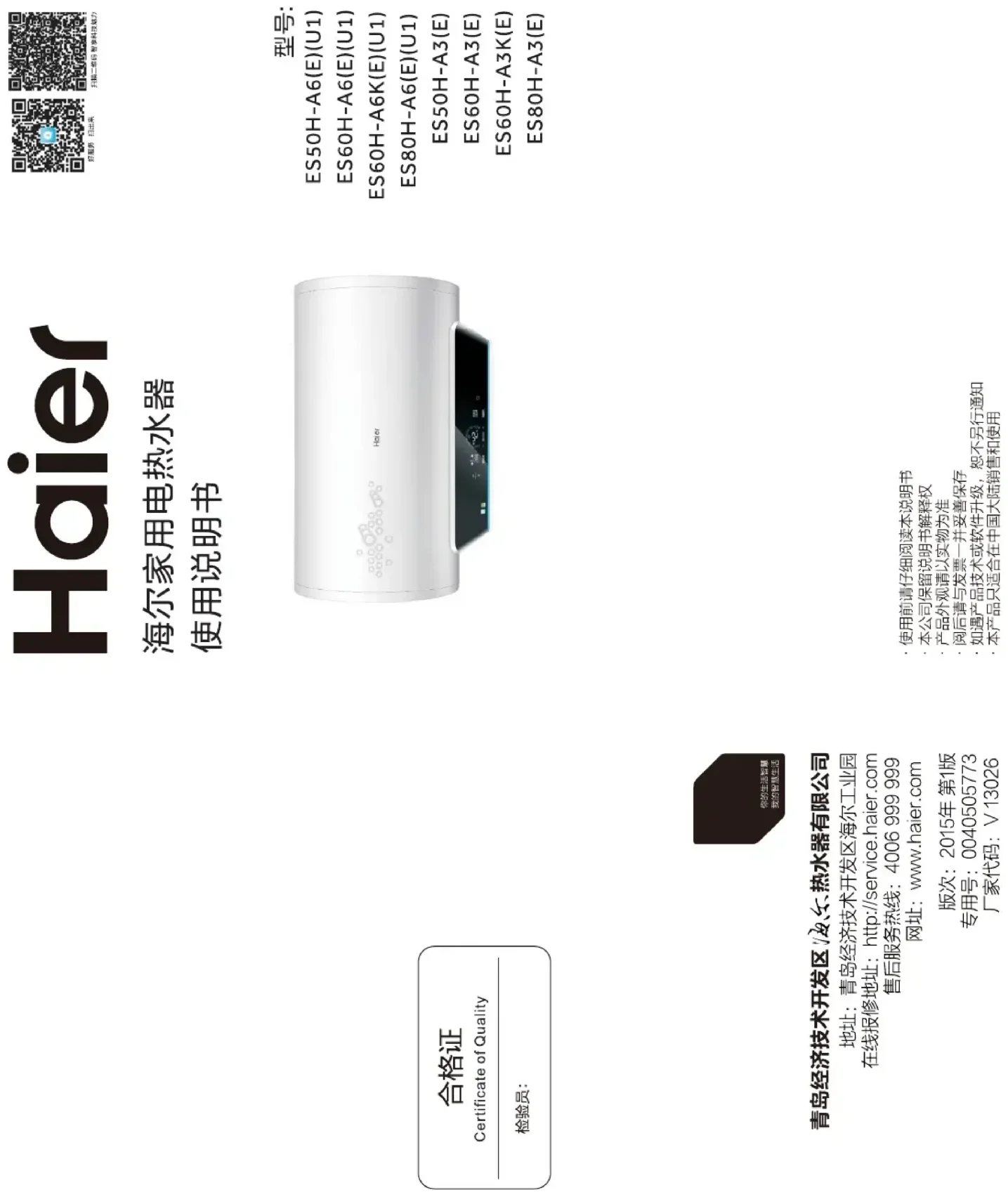 ES50H-A3(E) - Chaudière HAIER - Notice d'utilisation et mode d'emploi gratuit