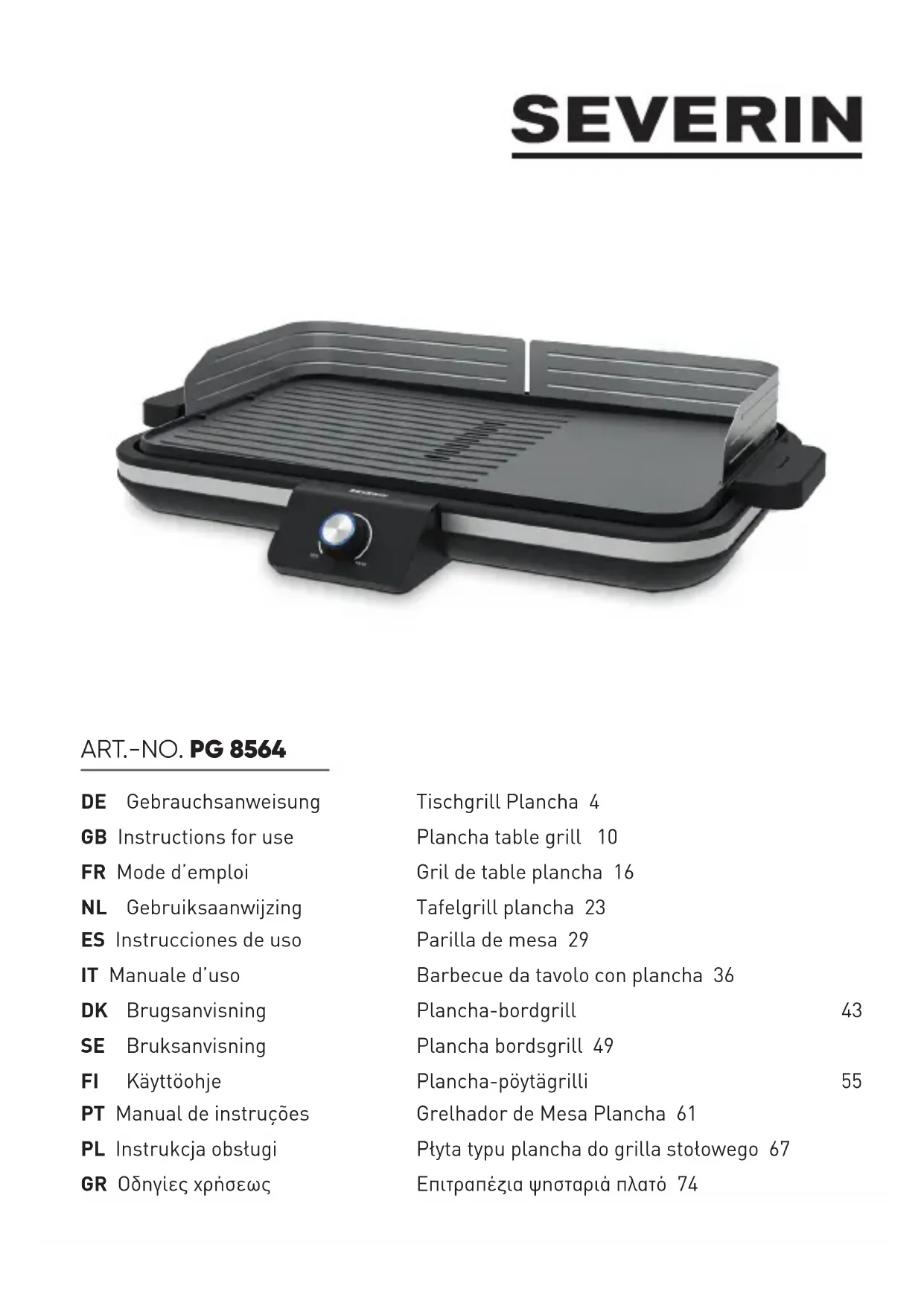 PG 8564 - Plaque de grill SEVERIN - Notice d'utilisation et mode d'emploi gratuit