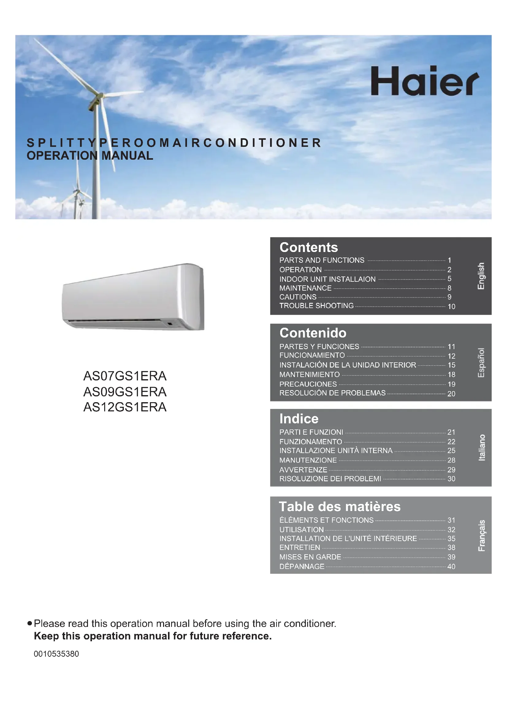 AS09GS1ERA - Climatisation HAIER - Notice d'utilisation et mode d'emploi gratuit