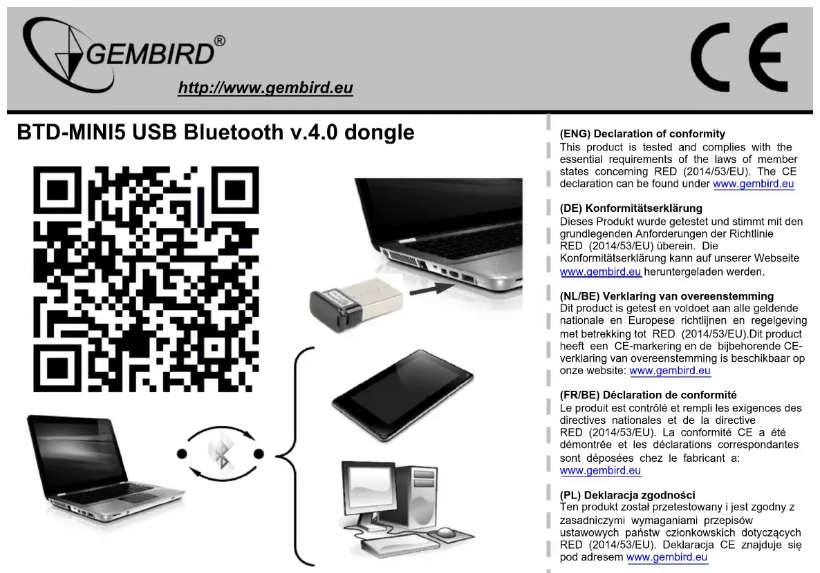 BTD-MINI6 - Carte réseau / adaptateur Gembird - Notice d'utilisation et mode d'emploi gratuit