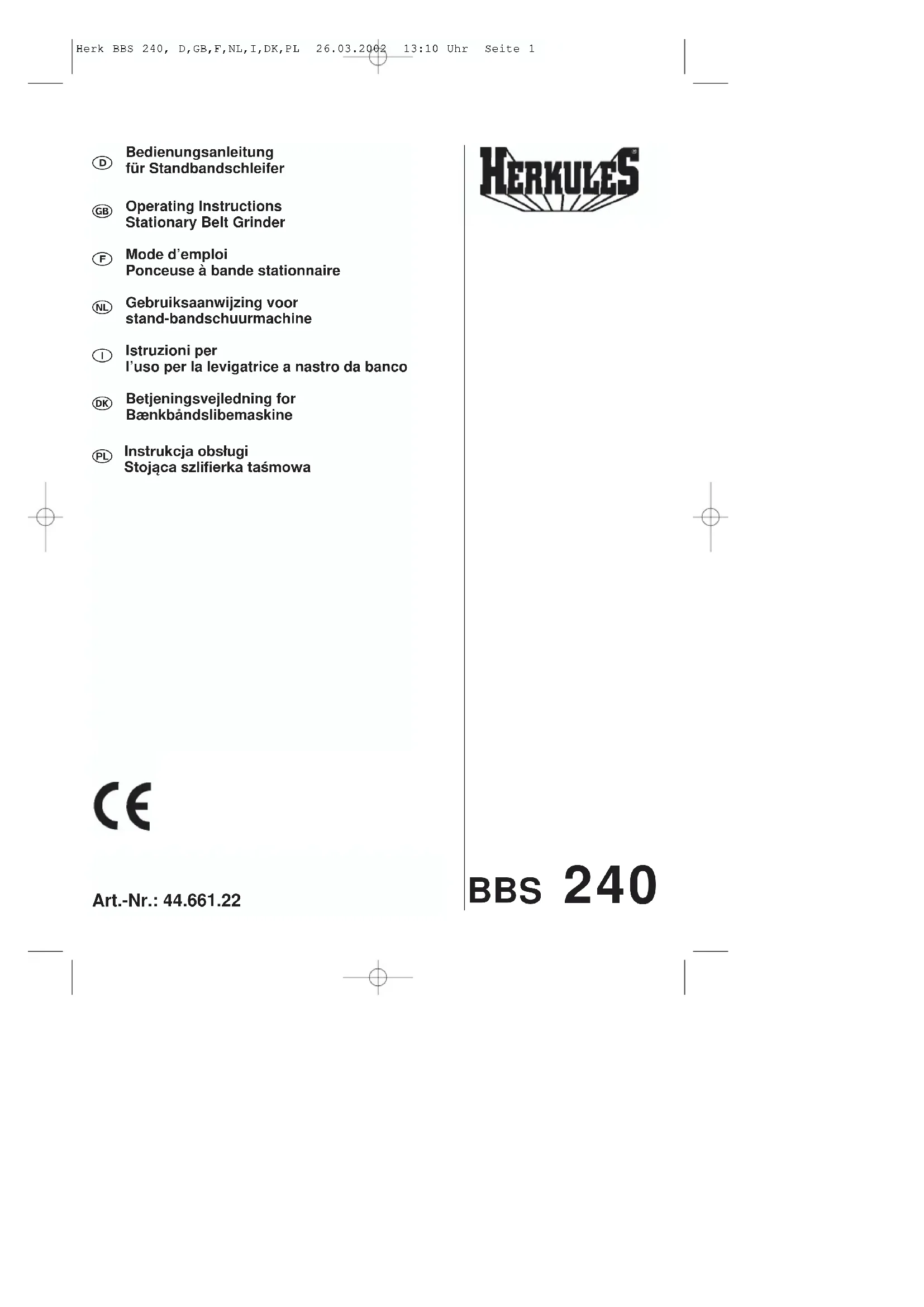 BBS 240 - Ponceuse Herkules - Notice d'utilisation et mode d'emploi gratuit