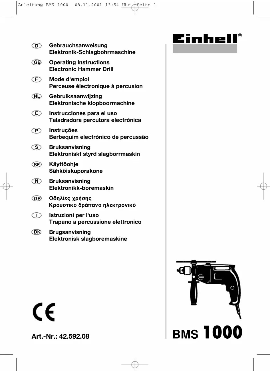 BMS 1000 ST - Perceuse EINHELL - Notice d'utilisation et mode d'emploi gratuit